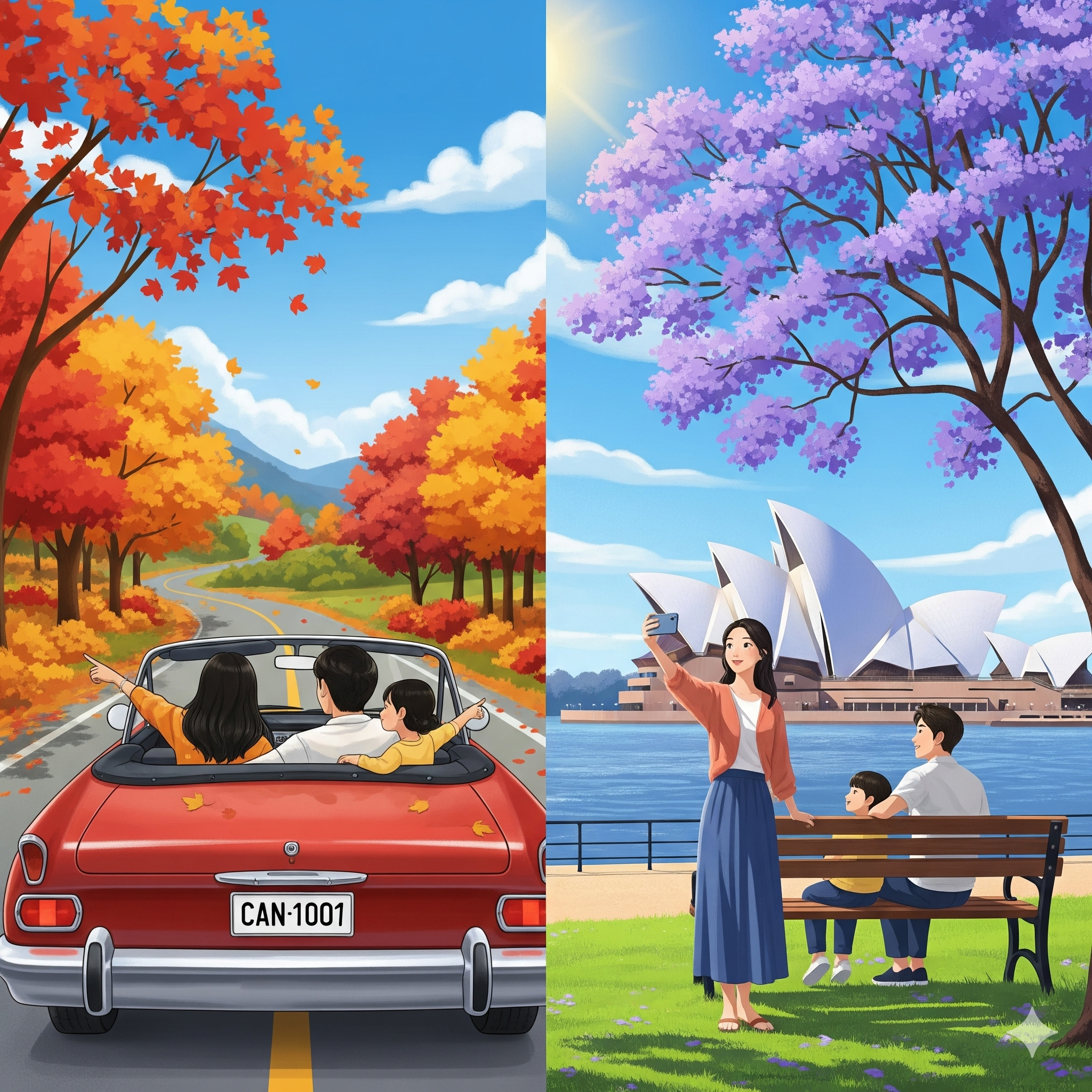 붉게 물드는 단풍의 나라 '캐나다'와, 화사한 봄꽃의 대륙 '호주'. 당신의 9월은 어떤 계절을 꿈꾸시나요? 어느 곳을 선택하든, 남들과는 다른 이색적인 경험이 당신을 기다리고 있을 겁니다.