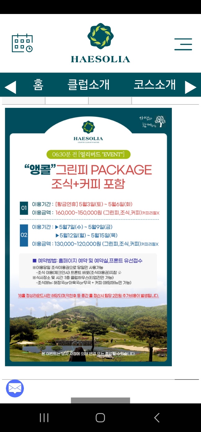 평소보다 특별한 이유는 바로 해솔리아 CC에서 진행하는 새벽 라운딩 패키지 이벤트에 참여했기 때문이다.