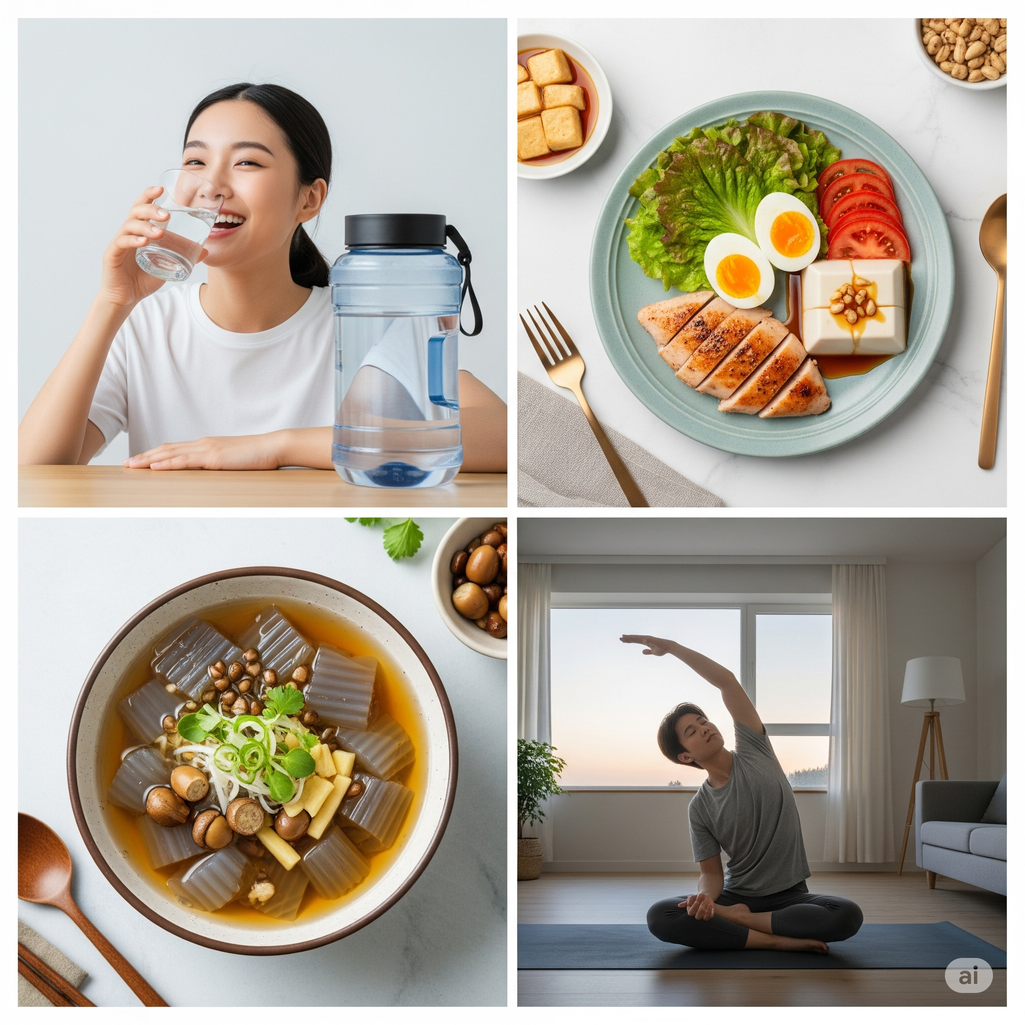 매 끼니, 건강한 단백질을 꼭 챙겨 드세요. 기름진 고기 대신, 삶은 달걀, 저지방 그릭 요거트, 닭가슴살, 두부, 콩 등 양질의 단백질은 포만감을 오래 유지시켜 주고, 근육 손실을 막아주는 최고의 다이어트 파트너입니다.