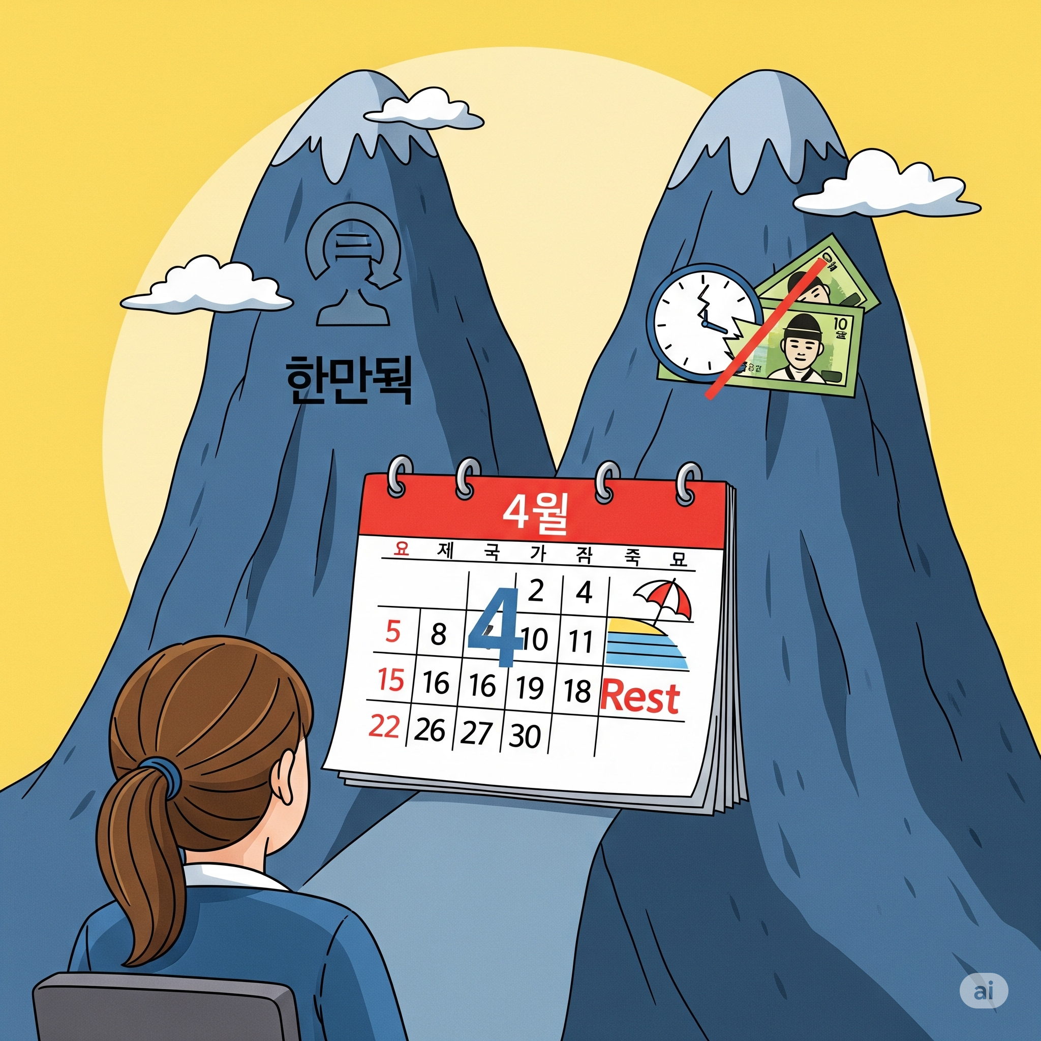 하지만, 이 꿈같은 제도가 현실이 되기까지는 생각보다 험난한 과정이 남아있습니다. "우리 회사도 주 4일제 가능할까?"라는 질문에 선뜻 "네!"라고 답하기 어려운 이유. 오늘은 주 4일제로 가는 길목을 가로막고 있는 '형평성''공짜 노동'이라는 두 개의 큰 산을 넘는 법에 대해 이야기해 보겠습니다.