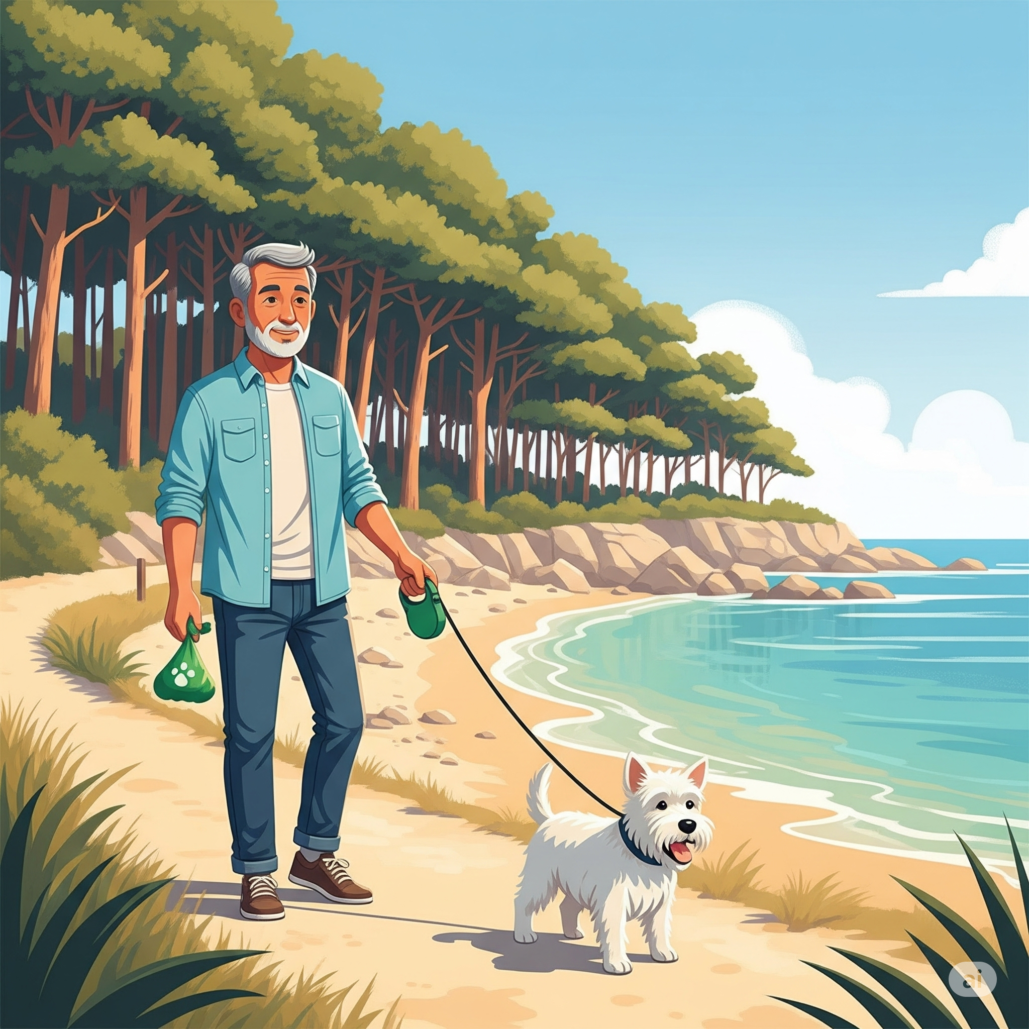 비록 백사장에는 들어갈 수 없더라도, 송정솔바람해변의 가장 큰 매력인 울창한 소나무 숲은 훌륭한 대안이 될 수 있습니다. 시원한 솔숲 그늘 아래 돗자리를 펴고, 반려견과 함께 바다를 보며 피크닉을 즐겨보세요. 솔향기와 바닷바람을 맞으며 함께 걷는 산책은 그 어떤 해변 부럽지 않은 힐링을 선사합니다.
