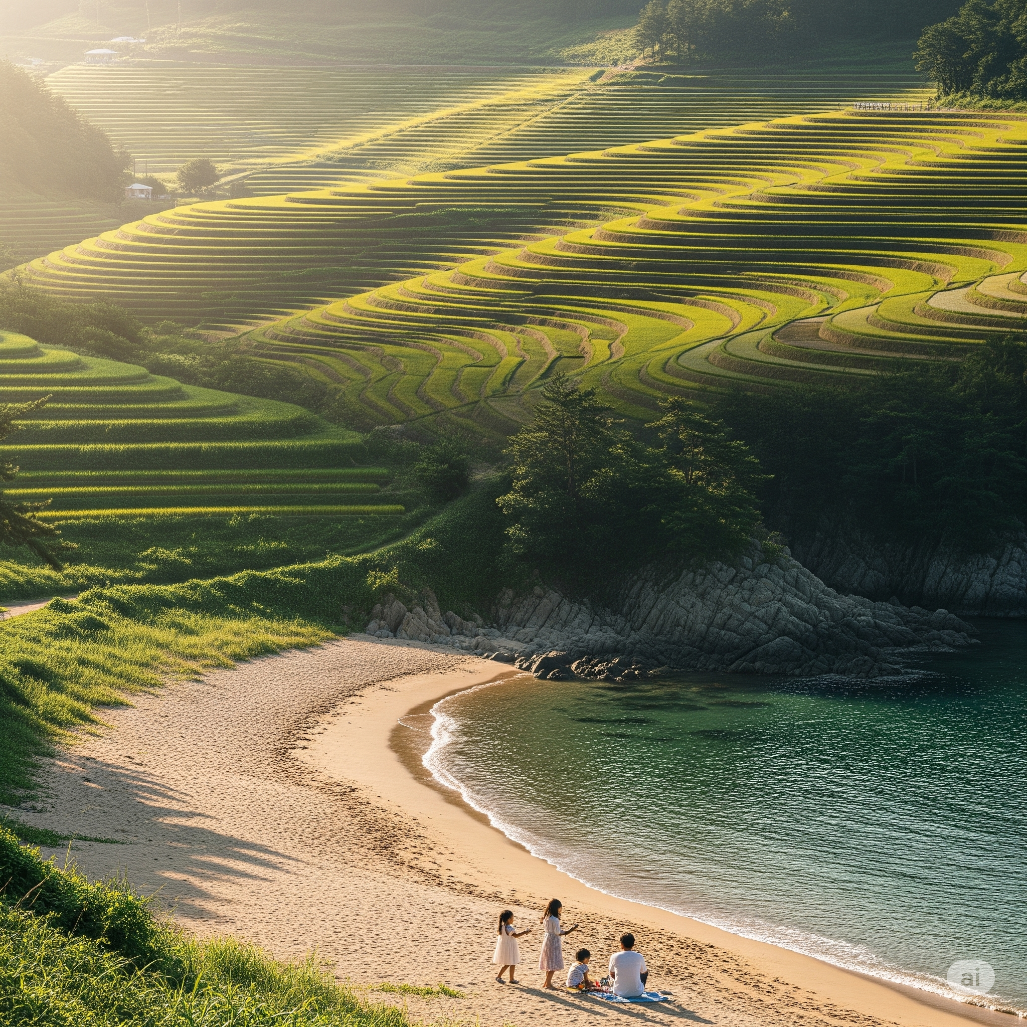 북적이는 여행에 지쳤다면, 다랭이마을의 숨겨진 파트너, 사촌해수욕장에서 나만 아는 작은 쉼표를 찍어보는 것은 어떨까요?