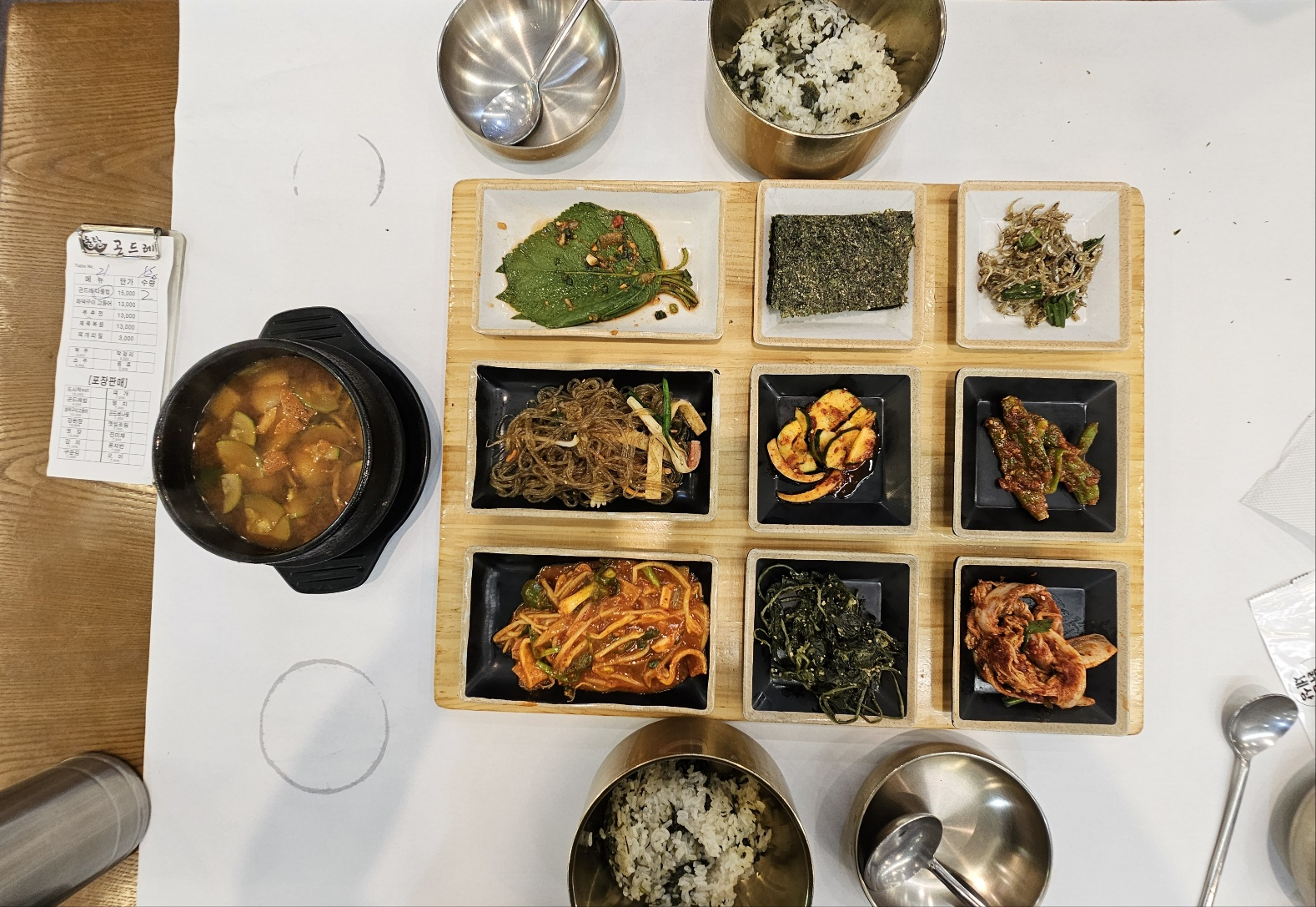 자리에 앉아 대표 메뉴인 곤드레밥 2개를 주문했습니다. 음식이 나오기를 기다리면서 셀프바를 구경하러 갔는데요, 정말 깜짝 놀랐습니다!