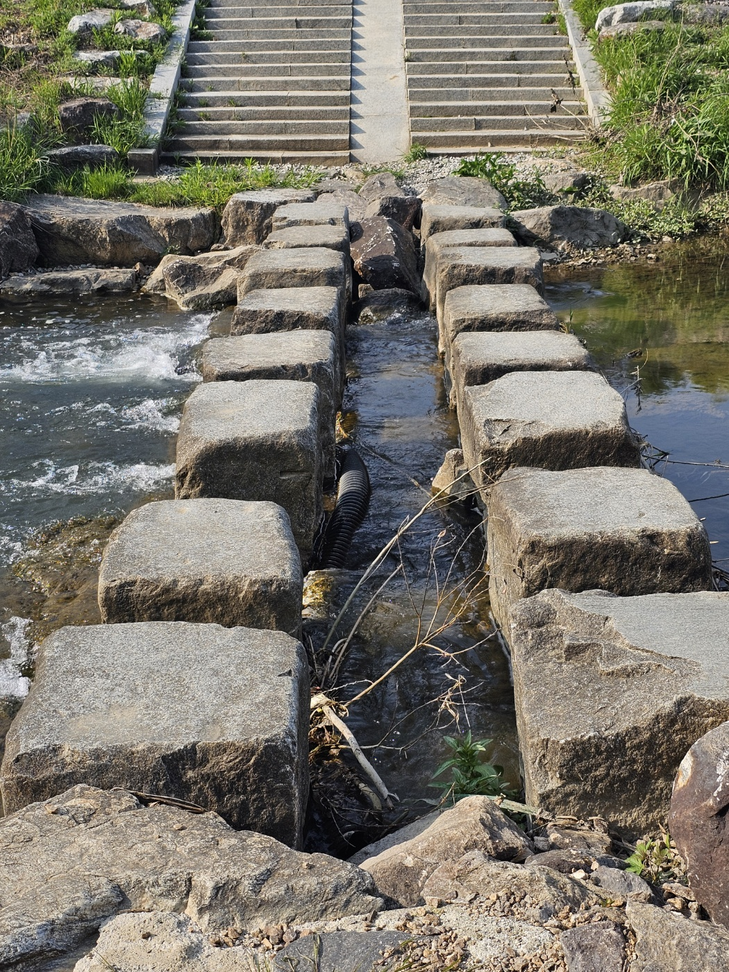 문득, 이 소중한 순간을 오래도록 간직하고 싶다는 생각에 카메라 셔터를 눌렀다. 사진 속의 투박한 돌다리는 단순한 냇가의 구조물이 아닌, 잊고 지냈던 따뜻한 추억과 그리운 향수를 불러내는 특별한 매개체가 되어줄 것이다. 신리천의 맑은 물 흐름과 함께, 그 돌다리는 오랫동안 내 마음속에 아련하고 아름다운 풍경으로 기억될 것이다.