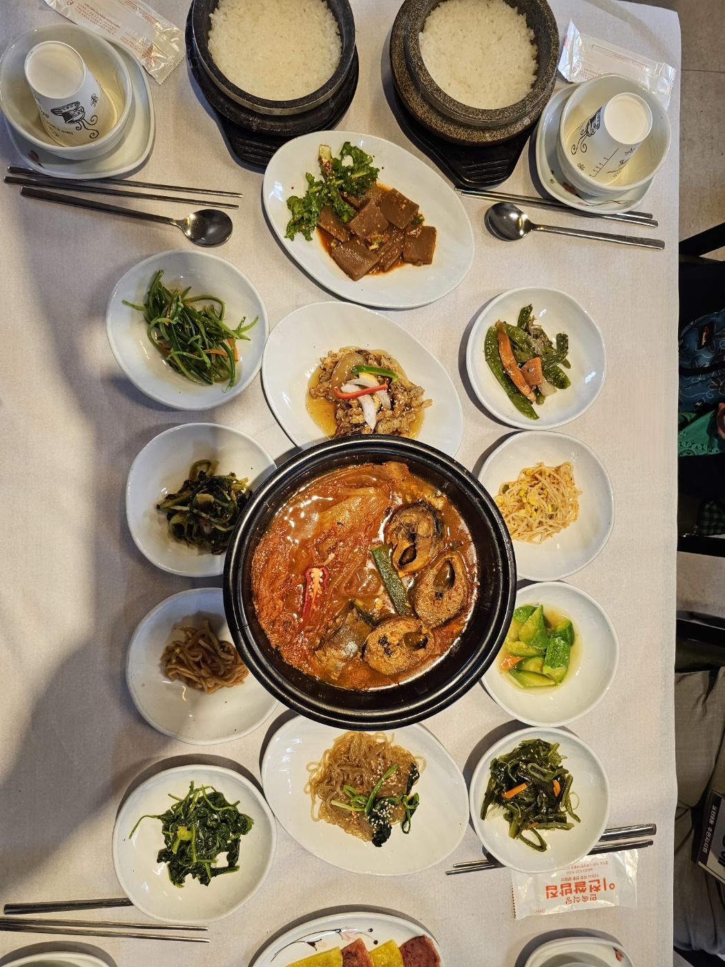 "금강산도 식후경!"이라는 말처럼, 배움의 시간 후에는 맛있는 점심이 기다리고 있었습니다. 저희는 이천의 명물, 이천 쌀밥집으로 이동했습니다. 갓 지어 윤기가 자르르 흐르는 하얀 쌀밥은 그야말로 꿀맛이었습니다. 정갈하고 맛깔스러운 반찬들이 상다리가 휘어지게 차려져 나와 정말 배부르고 행복한 식사를 즐겼습니다. 마지막으로 구수한 숭늉까지 한 그릇 비우니, 세상 부러울 것이 없는 기분이었습니다.