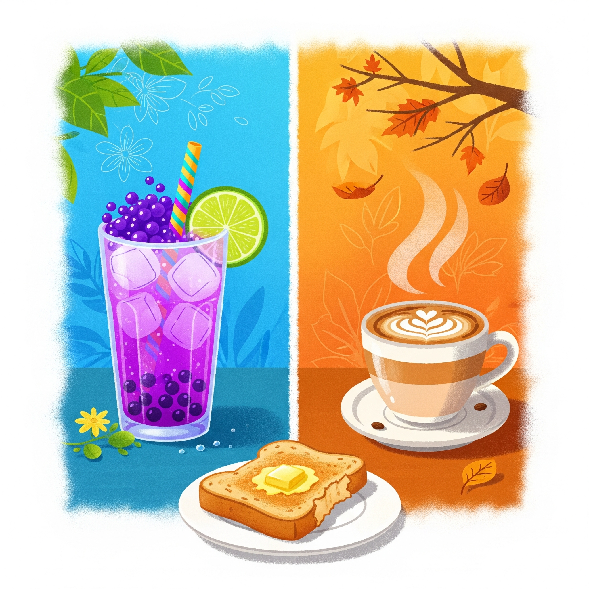 - 장점: 신비로운 보라색 히비스커스 티에 포도와 레몬의 상큼함, 그리고 입안에서 톡톡 터지는 '팝핑 보바'가 더해져, 마지막 여름의 맛을 즐기기에 완벽한 음료입니다.