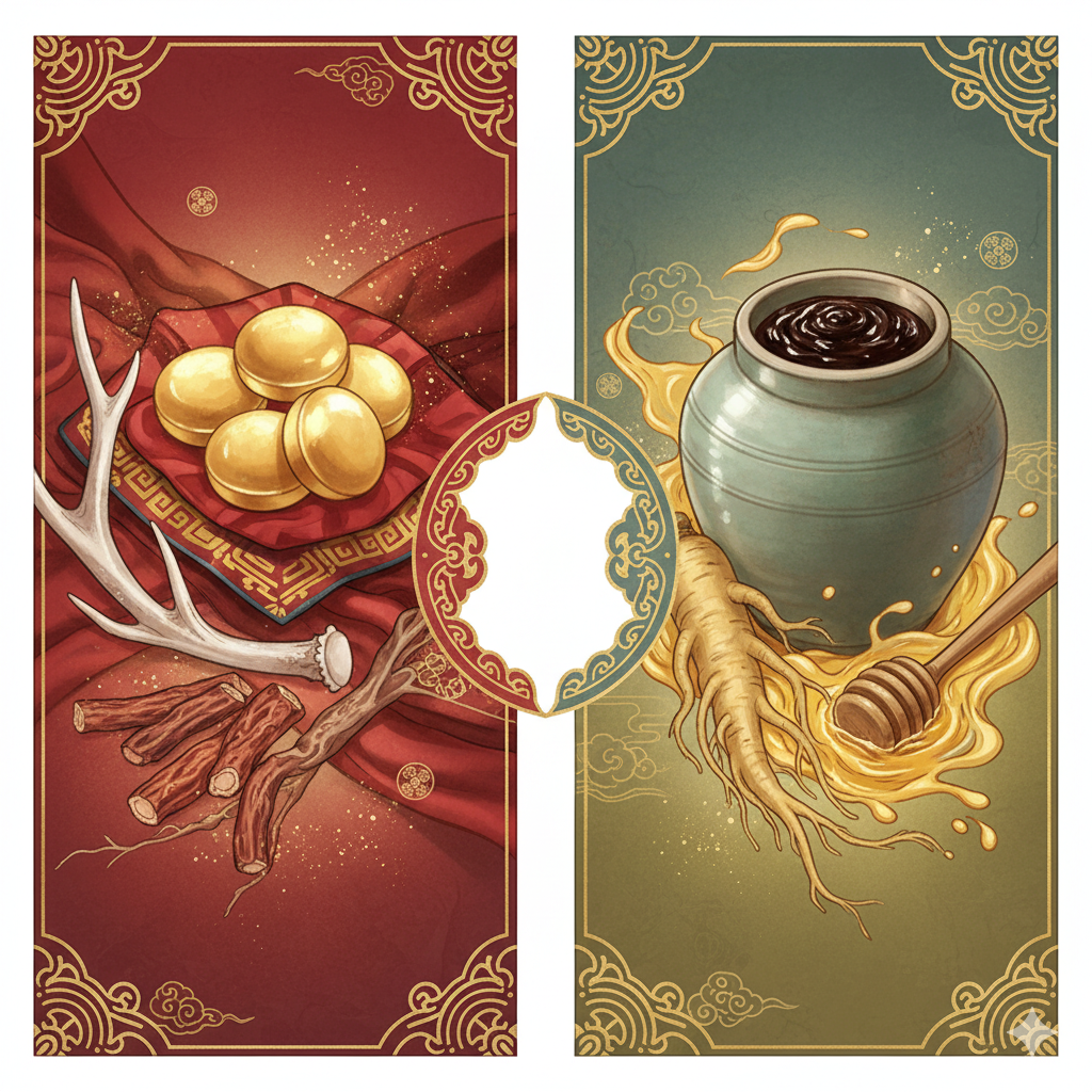 그래서 오늘 2화에서는, 예로부터 '황제의 보약', '무병장수의 명약'이라 불리며 기력 회복의 최고봉으로 꼽혀온 두 가지 귀한 처방, 공진단(拱辰丹)과 경옥고(瓊玉膏)에 대해 알아보려 합니다. 과연 어떤 약재들이 들어있기에 이토록 특별한 효능을 발휘하는 걸까요?