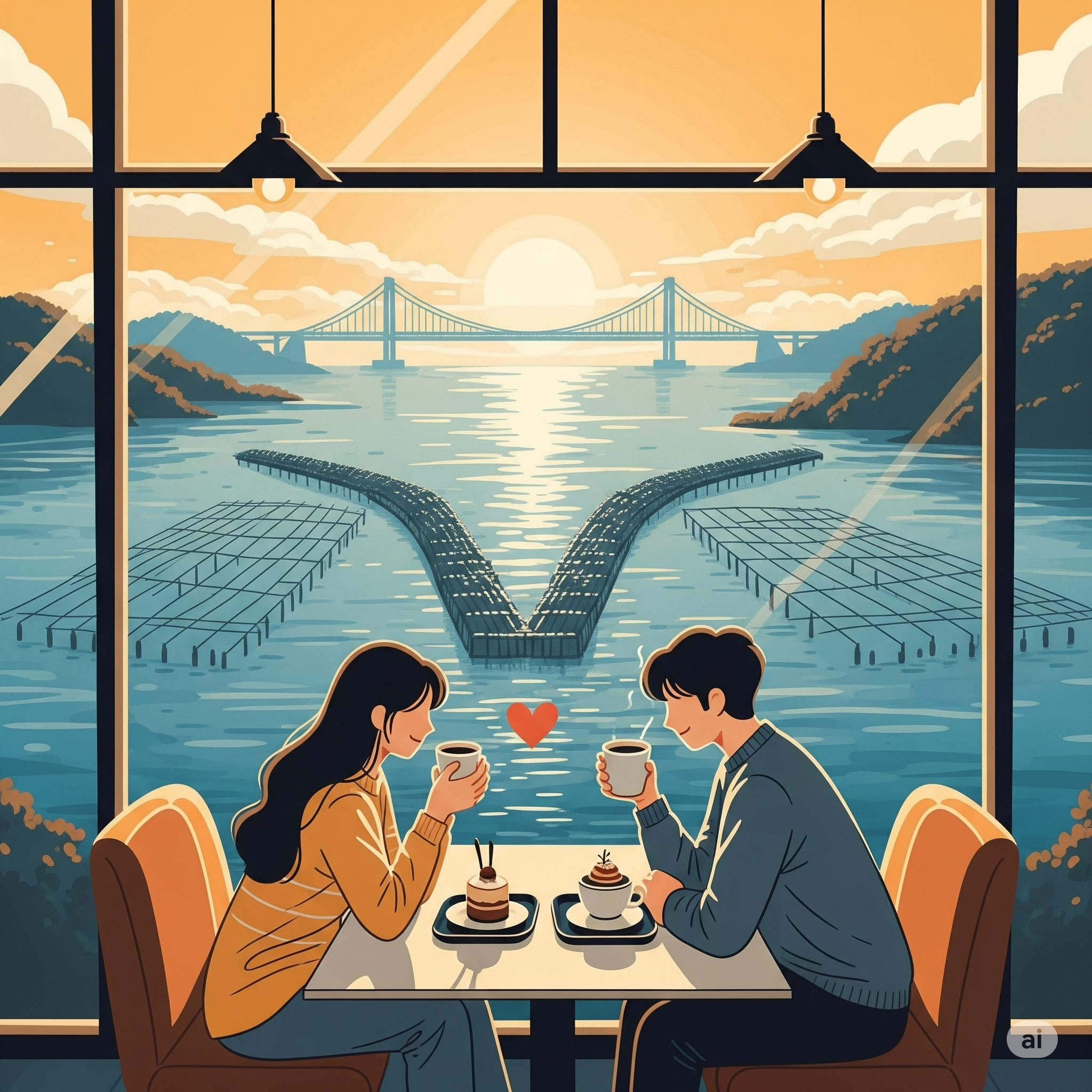 이 코스의 하이라이트는 '해 질 녘'입니다. 서서히 붉게 물드는 하늘과, 바다 위 죽방렴, 그리고 멀리 보이는 창선·삼천포대교의 실루엣은 그야말로 로맨틱의 절정입니다. 해가 완전히 지고 난 뒤, 다리에 조명이 켜지면 화려한 야경이 펼쳐지니, 그 모습까지 눈에 담고 돌아오는 것을 추천합니다.
