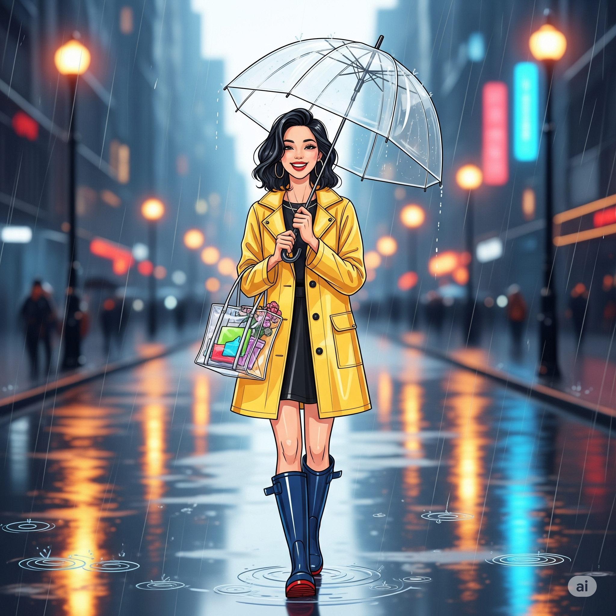 - 신발: 가죽이나 스웨이드, 캔버스 소재의 신발은 잠시 신발장에 넣어두세요. 대신, 스타일리시한 숏 레인부츠나 귀여운 젤리 슈즈, 그리고 최근 가장 트렌디한 EVA 소재의 클로그나 슬라이드를 활용해 보세요. 발이 젖을 걱정 없이, 오히려 비 오는 날을 기다리게 만드는 포인트 아이템이 되어줄 겁니다.