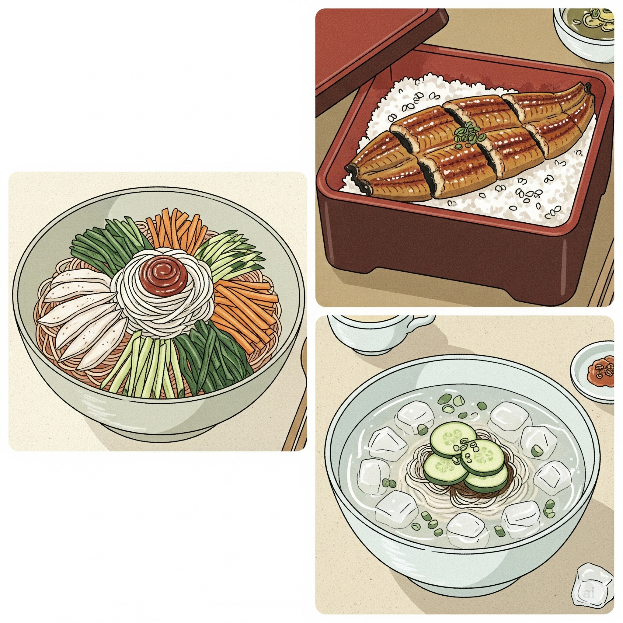 무더운 여름, 우리 몸은 그 어느 때보다 똑똑한 영양 보충을 필요로 합니다. 오늘 소개해드린 상큼한 초계국수, 든든한 장어덮밥, 시원한 오이냉국으로 지친 입맛과 기력을 되찾고, 건강하게 여름을 이겨내시길 바랍니다.