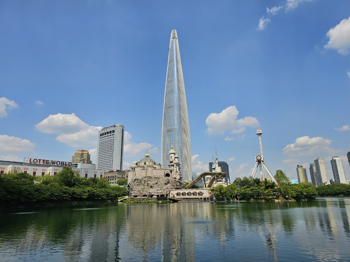 걷다 보니 롯데타워가 멋지게 보이는 장소가 나왔고, 맑은 하늘 덕분에 예쁜 사진도 여러 장 남길 수 있었습니다.