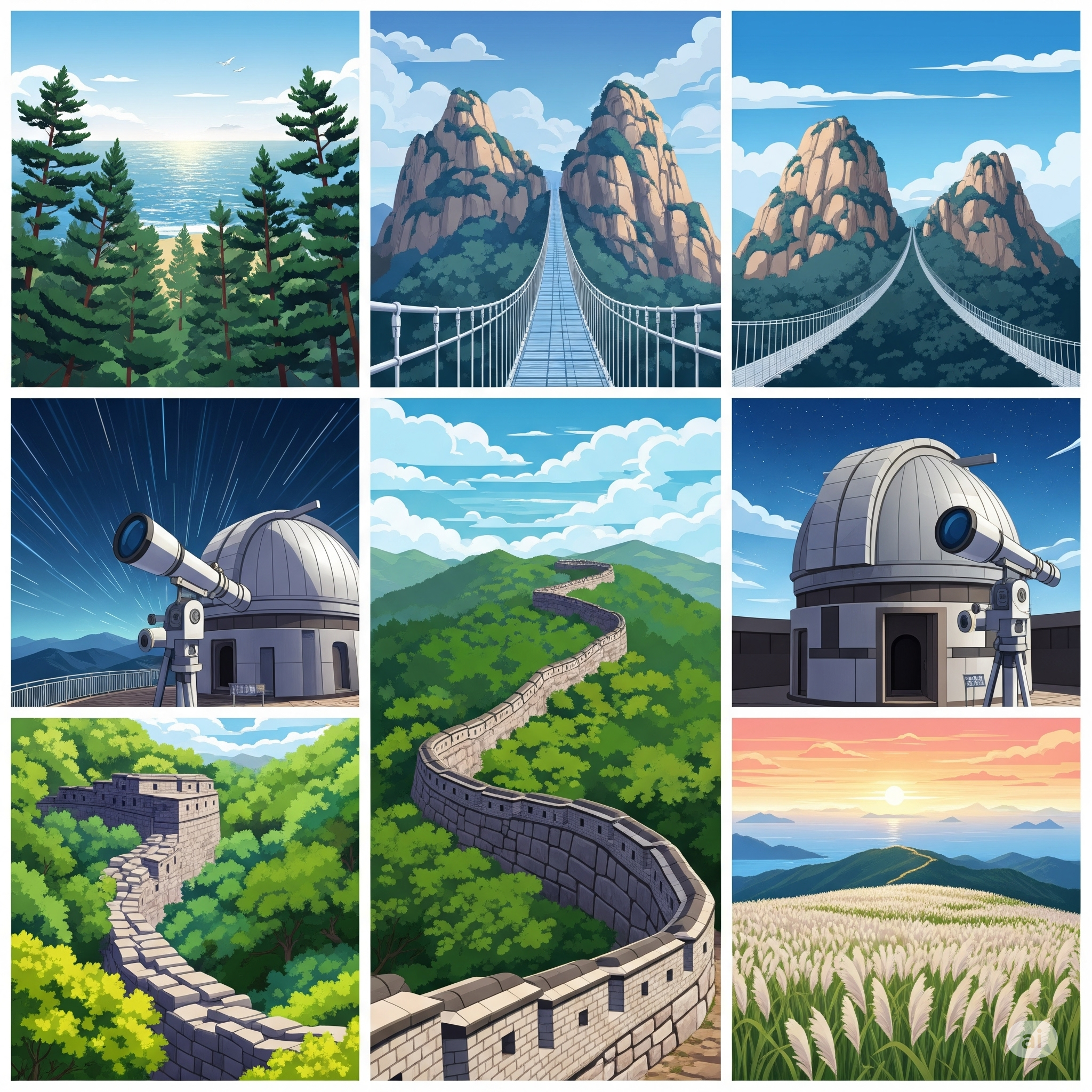 • 특징: '액티비티의 천국'. 국내에서 가장 긴 230m 길이의 '명상 구름다리'가 이곳의 상징입니다. 그뿐만 아니라 밤하늘의 별을 볼 수 있는 '좌구산 천문대', 숲속을 가르는 '짚라인' 등 다양한 즐길 거리가 가득해, 조용한 휴식과 함께 짜릿한 체험을 원하는 분들에게 안성맞춤입니다.