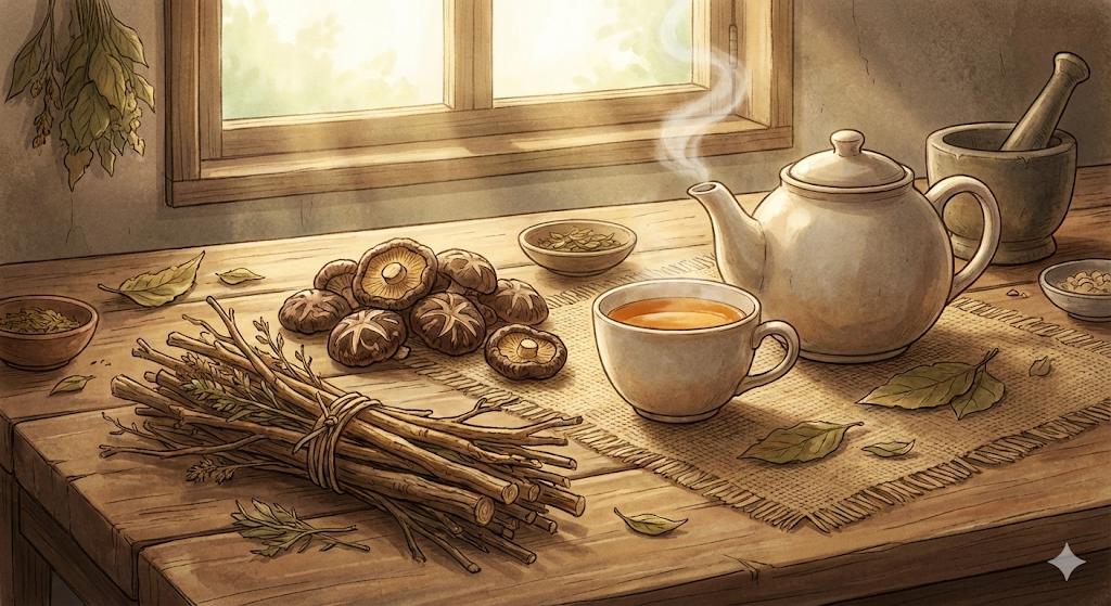 오늘 시장에 가시면 투박하게 생긴 우슬 뿌리와 잘 말린 표고버섯 한 봉지 사 오시는 건 어떨까요?