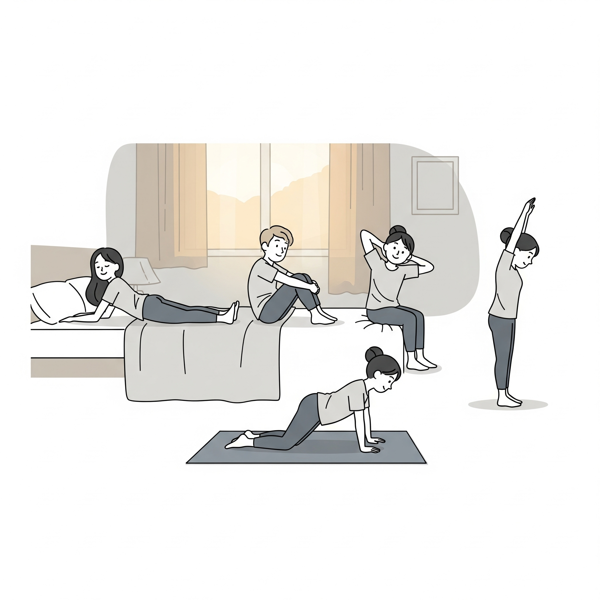 • 기분 전환 및 스트레스 감소: 가벼운 스트레칭은 '행복 호르몬'인 세로토닌 분비를 촉진해, 상쾌한 기분으로 하루를 시작하게 돕습니다.