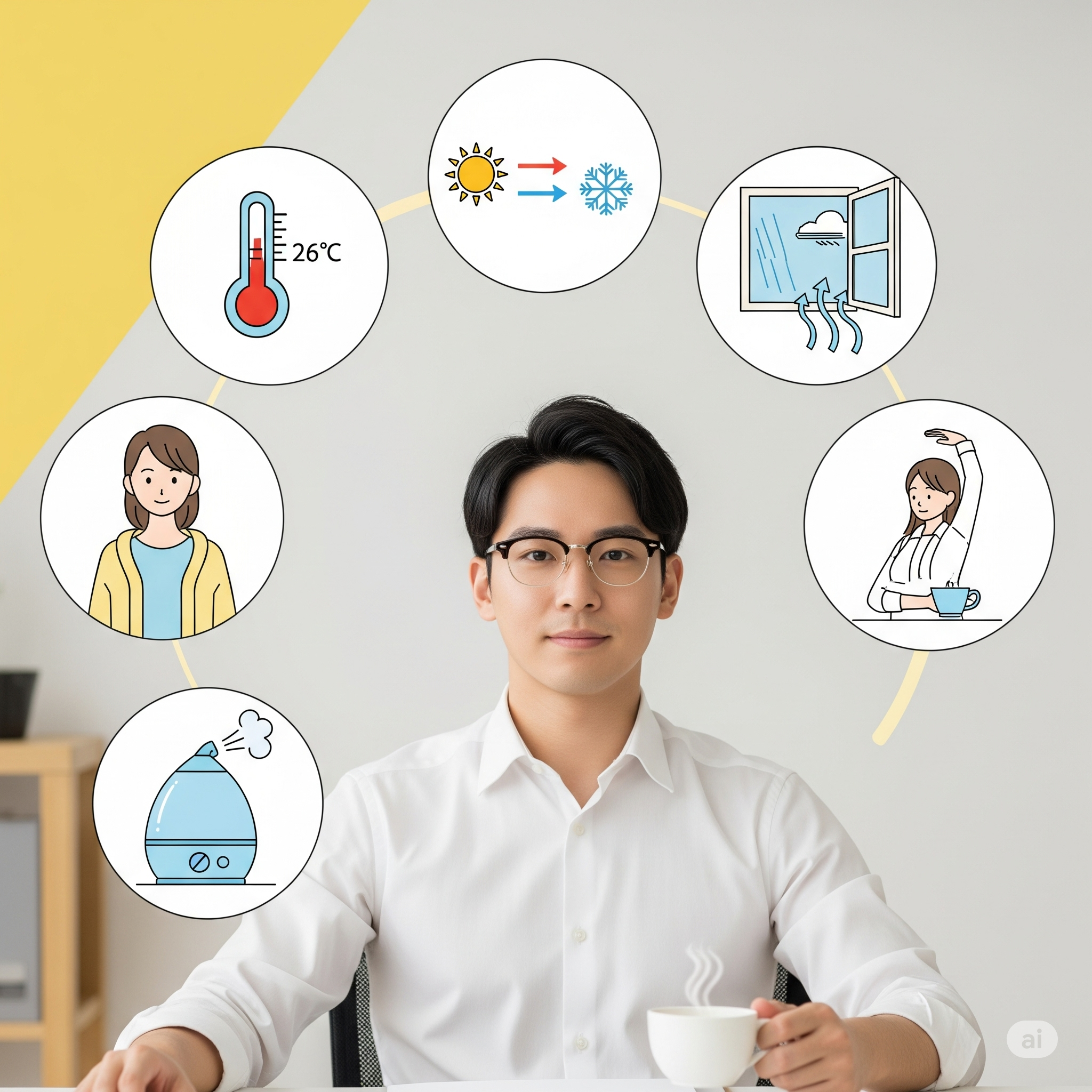 냉방병은 단순히 '추위를 타는 것'이 아니라, 급격한 온도 변화에 우리 몸의 자율신경계가 적응하지 못해 발생하는 일종의 '증후군'입니다. 오늘은 약간의 습관 변화만으로도 이 지긋지긋한 냉방병을 예방하고, 건강하고 쾌적한 여름 실내 생활을 할 수 있는 5가지 꿀팁을 소개해 드립니다.