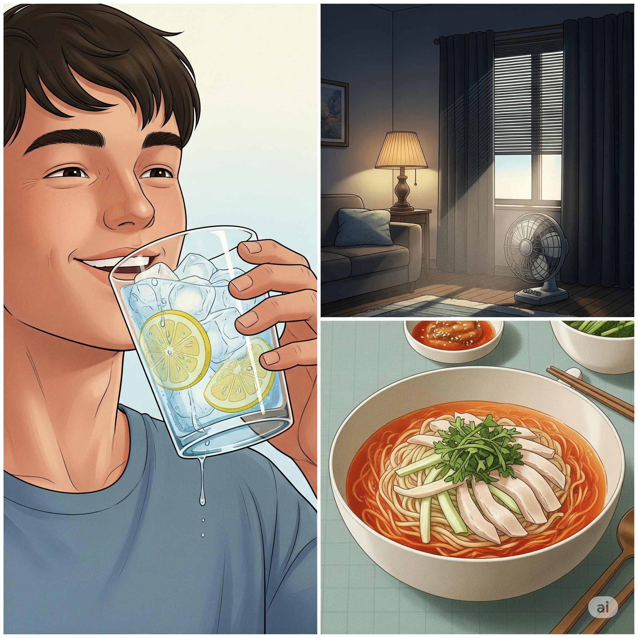 - 스마트 환기: 하루 중 가장 시원한 시간대인 이른 아침과 늦은 저녁에 맞바람이 치도록 창문을 활짝 열어 집안의 더운 공기를 밖으로 내보내세요.