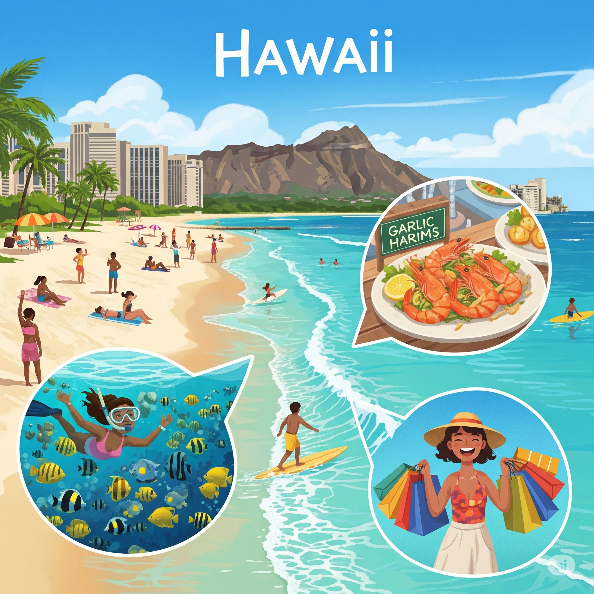 하와이는 여러 개의 섬으로 이루어져 있지만, 대부분의 첫 여행은 국제공항과 와이키키 해변이 있는 '오아후섬'에서 시작됩니다.