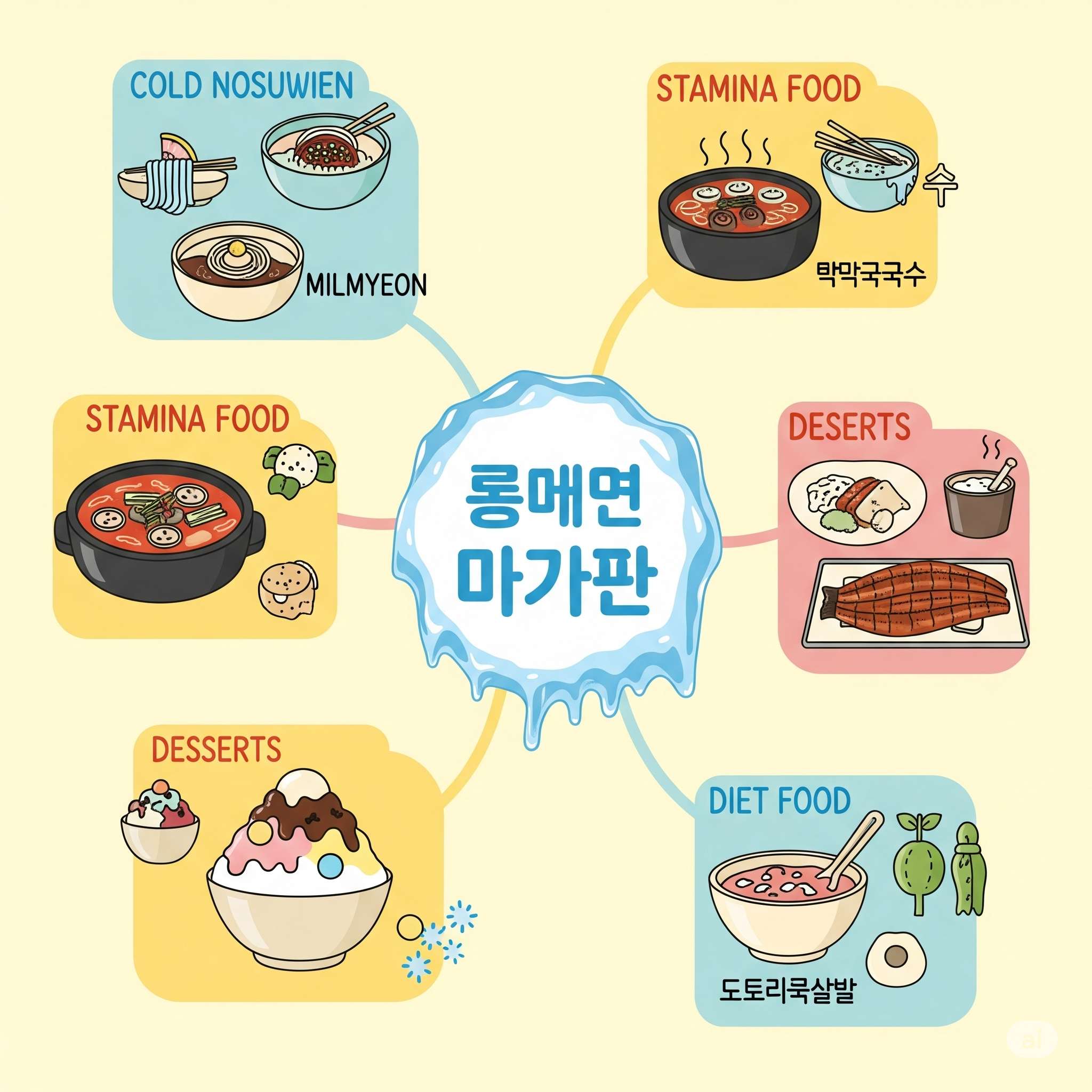 지난 몇 주간, 우리는 냉면, 삼계탕, 물회, 콩국수, 묵사발 등 더위를 이겨낼 수 있는 수많은 여름 별미의 세계를 함께 여행했습니다. "정보는 너무 많은데, 그래서 뭘 먹어야 할지 더 헷갈려요!" 하는 분들을 위해 준비했습니다.