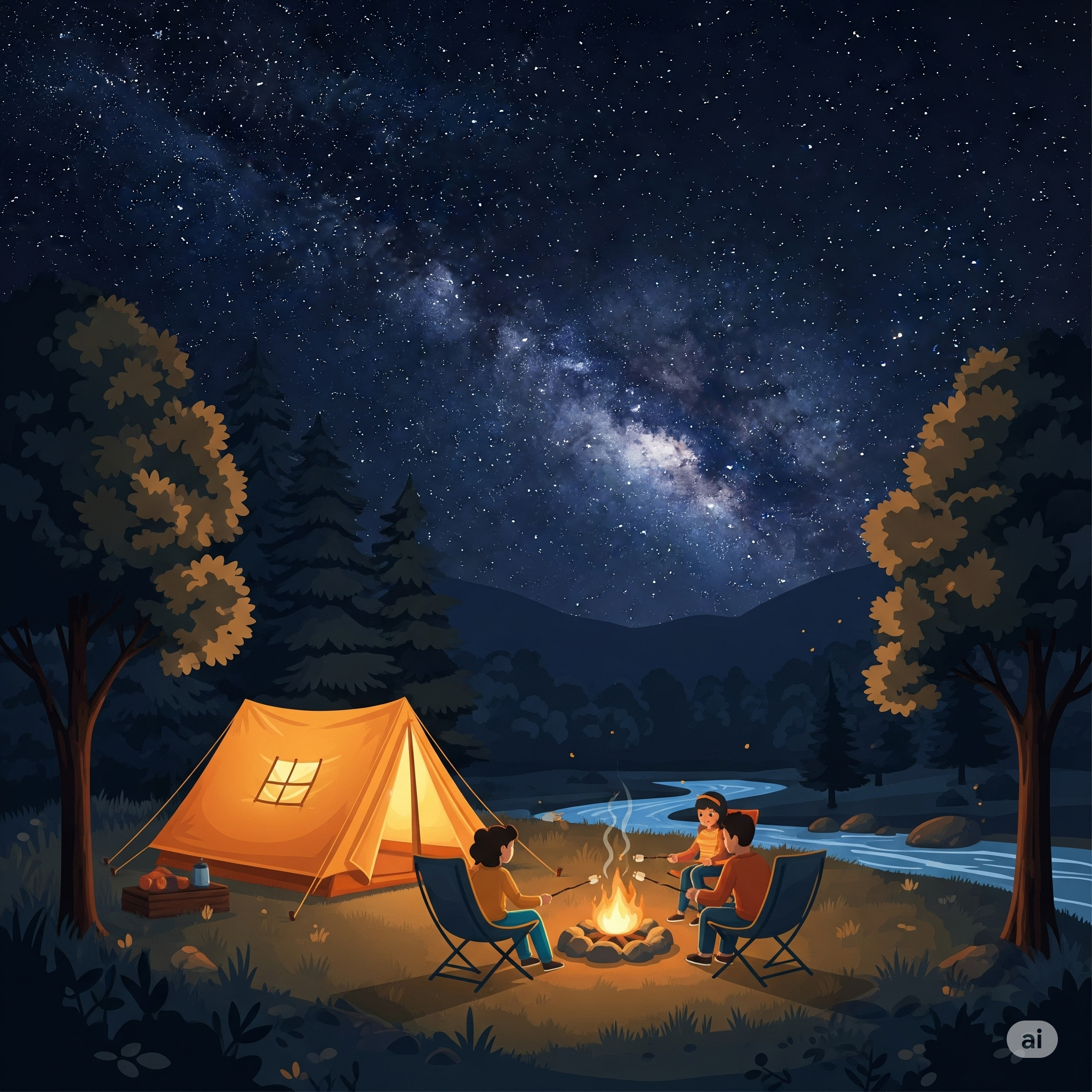 ② 밤하늘의 선물: 쏟아지는 별과 모닥불
