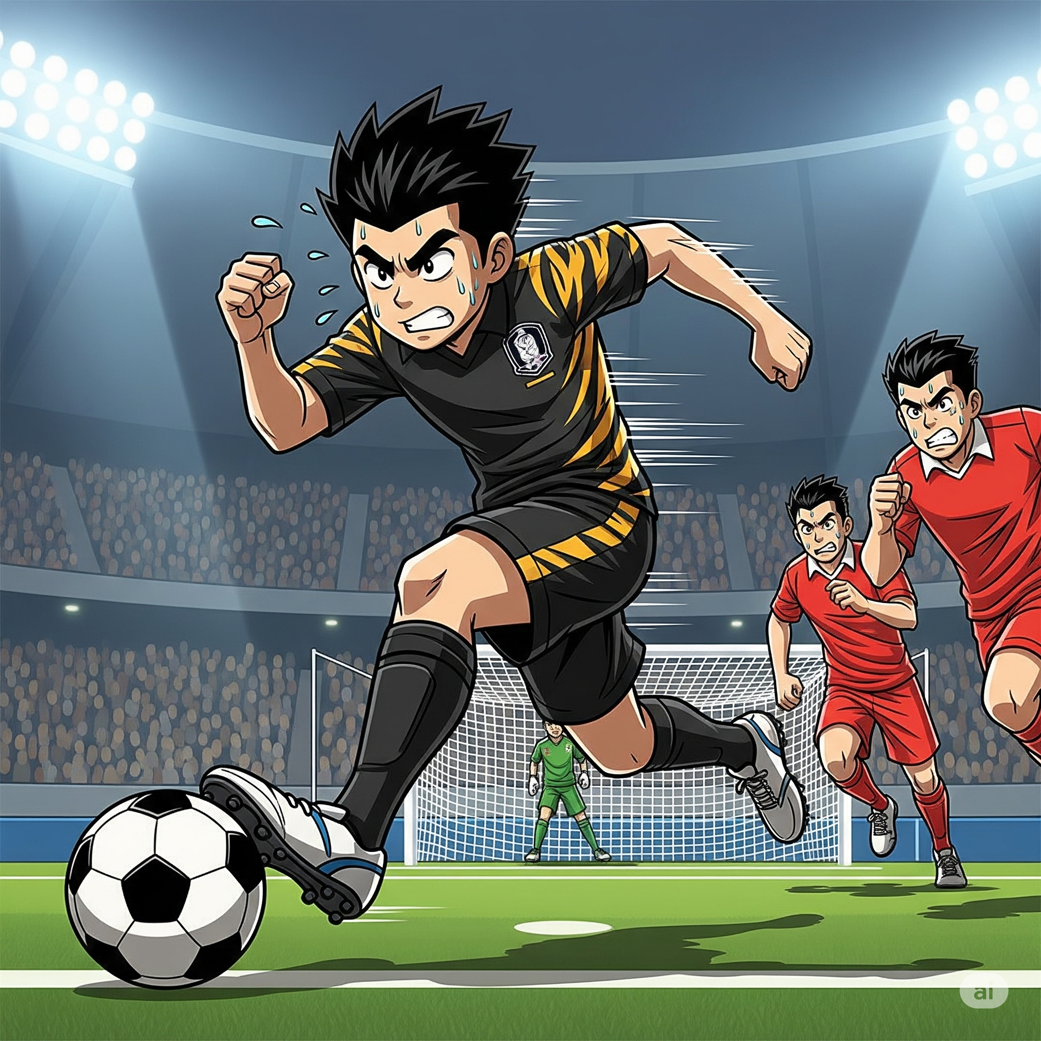 역습 상황에서 동료의 침투 패스가 연결되자, 손흥민 선수는 상대 수비수 두 명 사이를 그야말로 '폭풍 질주'로 돌파했습니다. 토트넘 시절 전 세계를 놀라게 했던 바로 그 스피드였습니다. 페널티 박스 안까지 순식간에 파고든 손흥민 선수는 뒤쫓아온 상대 수비수의 태클에 걸려 넘어졌고, 비디오판독(VAR) 끝에 극적인 페널티킥이 선언되었습니다. 1-2로 지고 있던 팀을 패배의 수렁에서 건져내는 천금 같은 순간이었습니다.