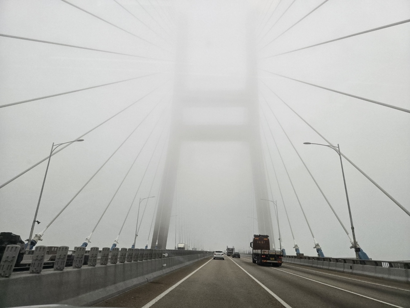 🌫️ 서해대교를 건널 때, 짙게 낀 안개와 바람 때문에 조심스럽게 운전했습니다. 주말이면 '지옥의 다리'라 불릴 정도로 붐비는 곳이지만, 평일이라 한산해서 다행이었습니다. 탁 트인 바다를 보며 달리는 기분은 언제나 좋지만, 안전 운전이 최우선이죠!