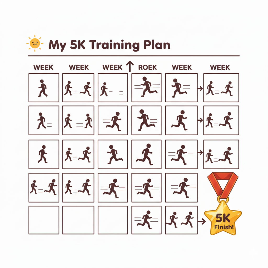 3. "이대로만 따라 하세요!" - 5km 완주를 위한 8주 로드맵 (예시)