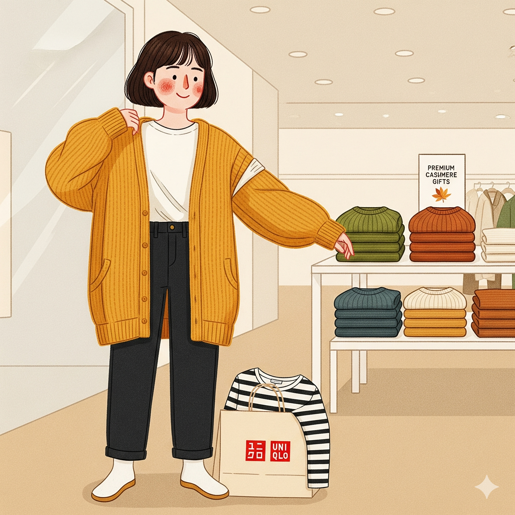 이번 주 유니클로 쇼핑 전략은 명확합니다. 기간 한정 세일 코너에서 가을 데일리룩 필수템인 가디건과 스트라이프 티셔츠를 '득템'하고, 혹시 남아있을지 모를 Uniqlo U를 찾아보고, 마지막으로 추석 선물 코너에서 고급 니트를 미리 준비하는 것이죠.