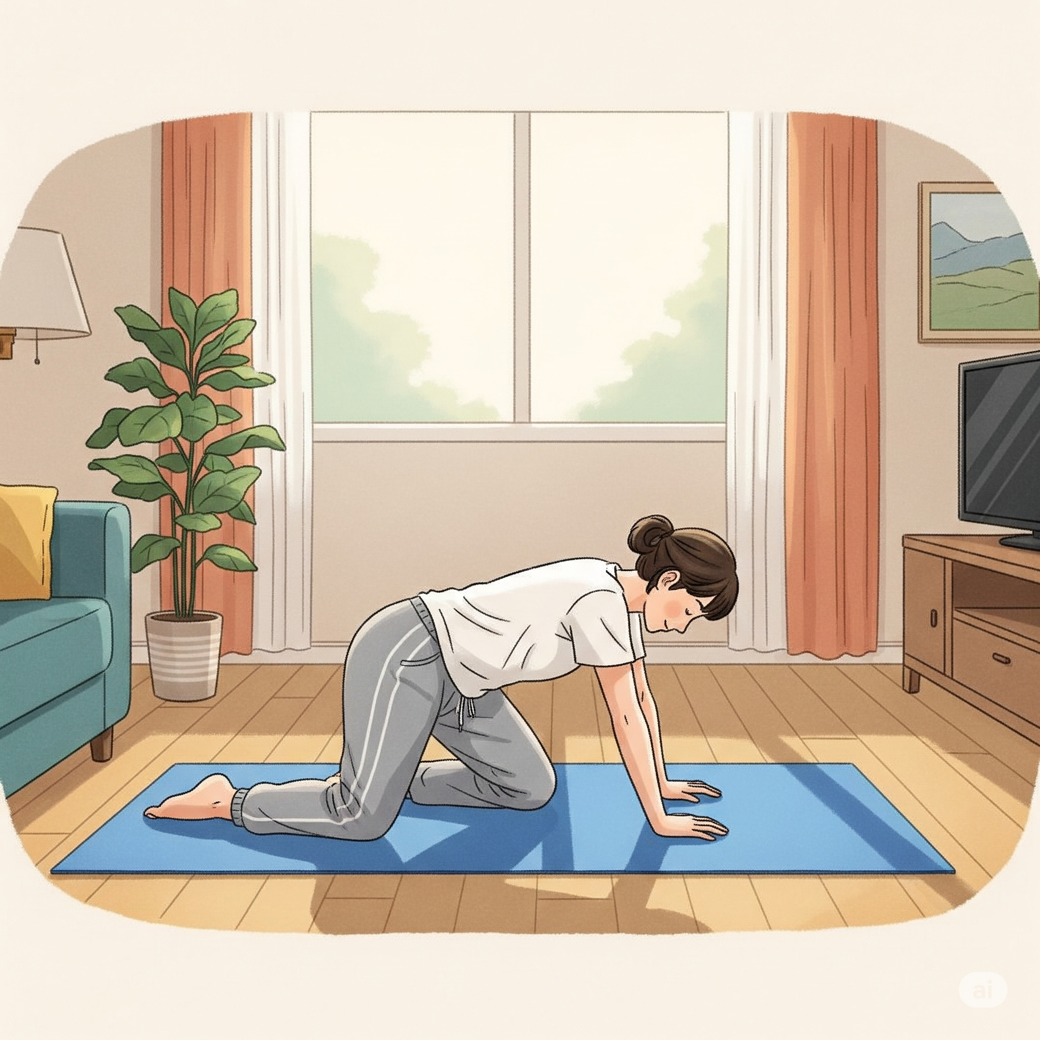 - [1~3분] 고양이-소 자세 (Cat-Cow Pose): 굳은 척추 마디마디를 깨우기