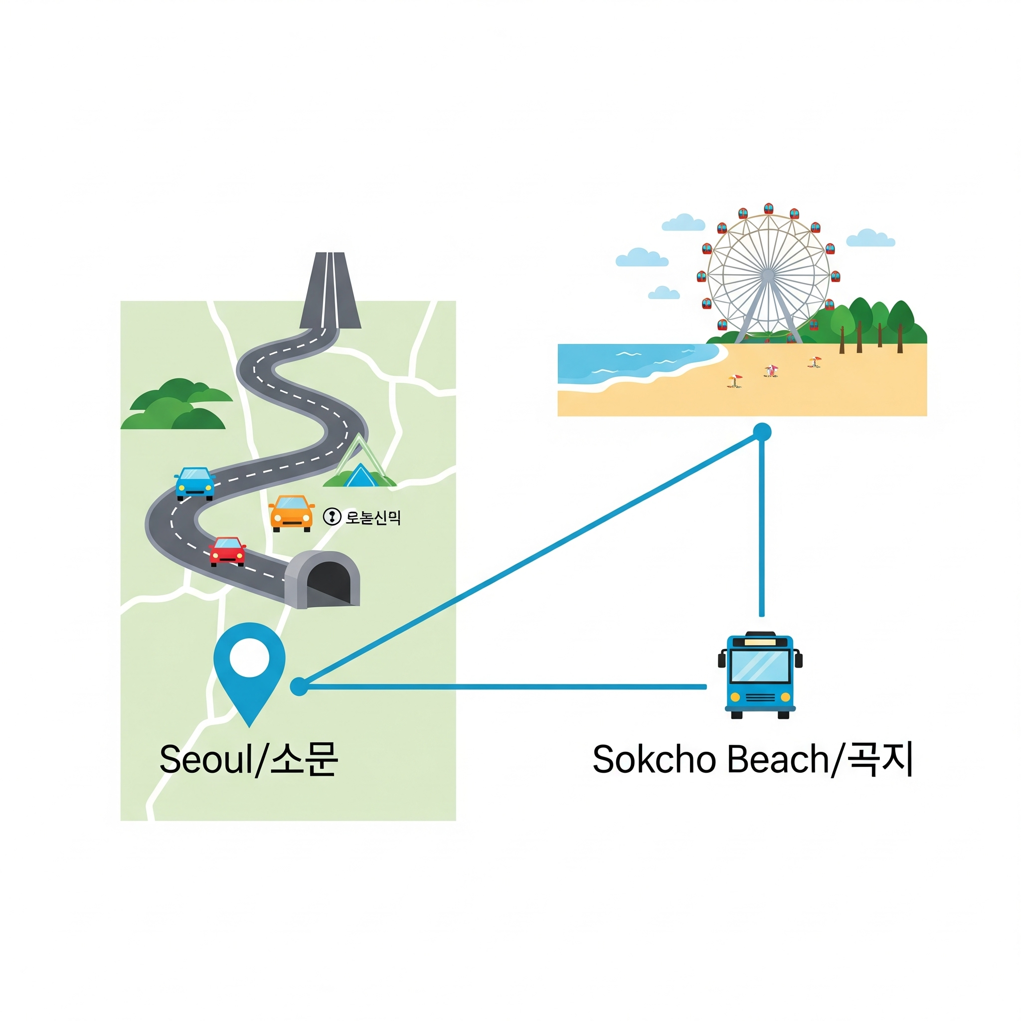 여행은 목적지로 향하는 그 길 위에서부터 시작됩니다. 당신의 스타일에 맞는 최적의 방법을 선택하여, '인생샷' 가득한 즐거운 속초 여행을 다녀오시길 바랍니다!