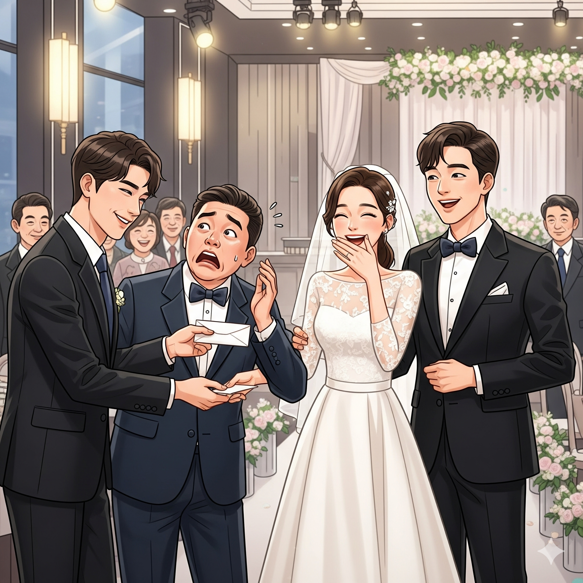 "결혼식 가는 길에 갑자기 그런 생각이 들었다. 결혼식이 끝나고 힘들게 축의금을 확인할 때, (이 봉투를 보고) 한 번 웃으라고 한 거다. 내가 하면서도 웃겼다."