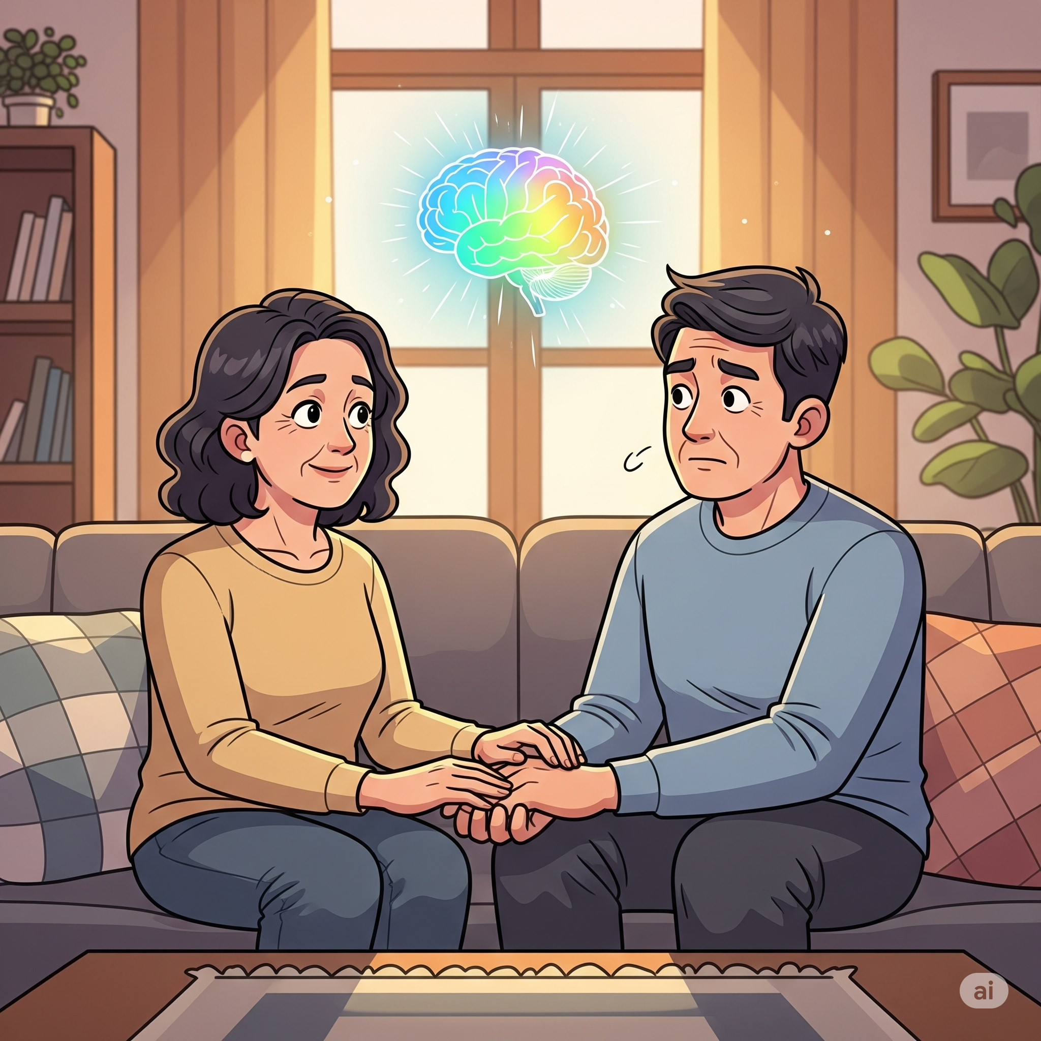 남편의 손을 꼭 잡은 이혜숙 씨. 부부는 '치매'를 두려움의 대상이 아닌, 함께 공부하고 관리하며 이겨나갈 과제로 받아들이기로 했습니다. 이 시리즈는 바로 이 부부와 함께, 즐겁고 쉽게 치매를 예방하는 방법을 하나씩 배워나가는 여정이 될 것입니다.