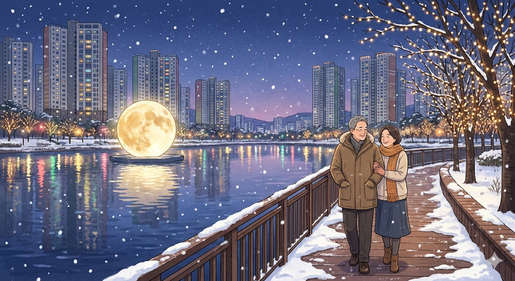 - 🌙 루나쇼 & 야경: 겨울 밤 호수에 비치는 아파트 불빛과 조명이 어우러져 정말 아름답습니다. 두꺼운 패딩 입고 아내분 손잡고 데크길을 천천히 걷는 것만으로도 훌륭한 데이트가 됩니다.