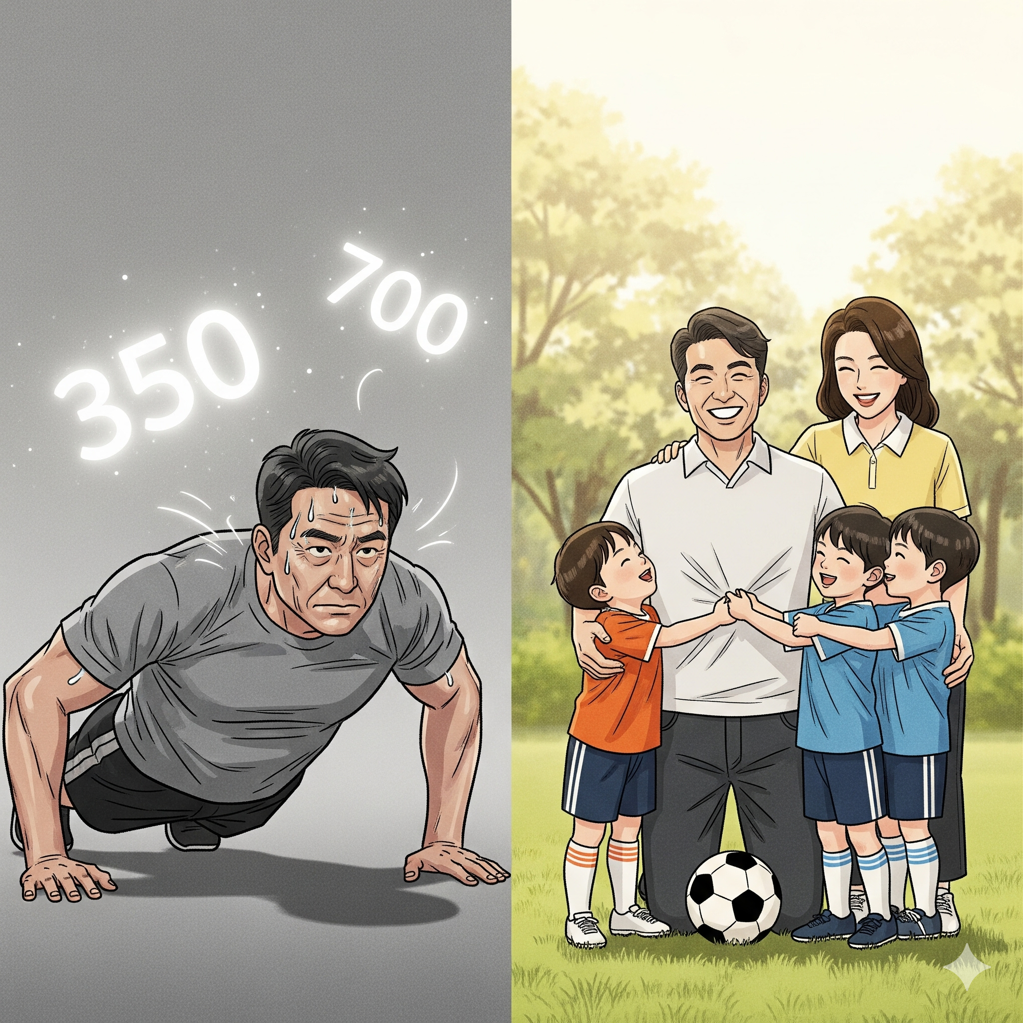 2. "곧 환갑, 막내까지 케어해야"… 푸쉬업 350개 + 스쾃 700개