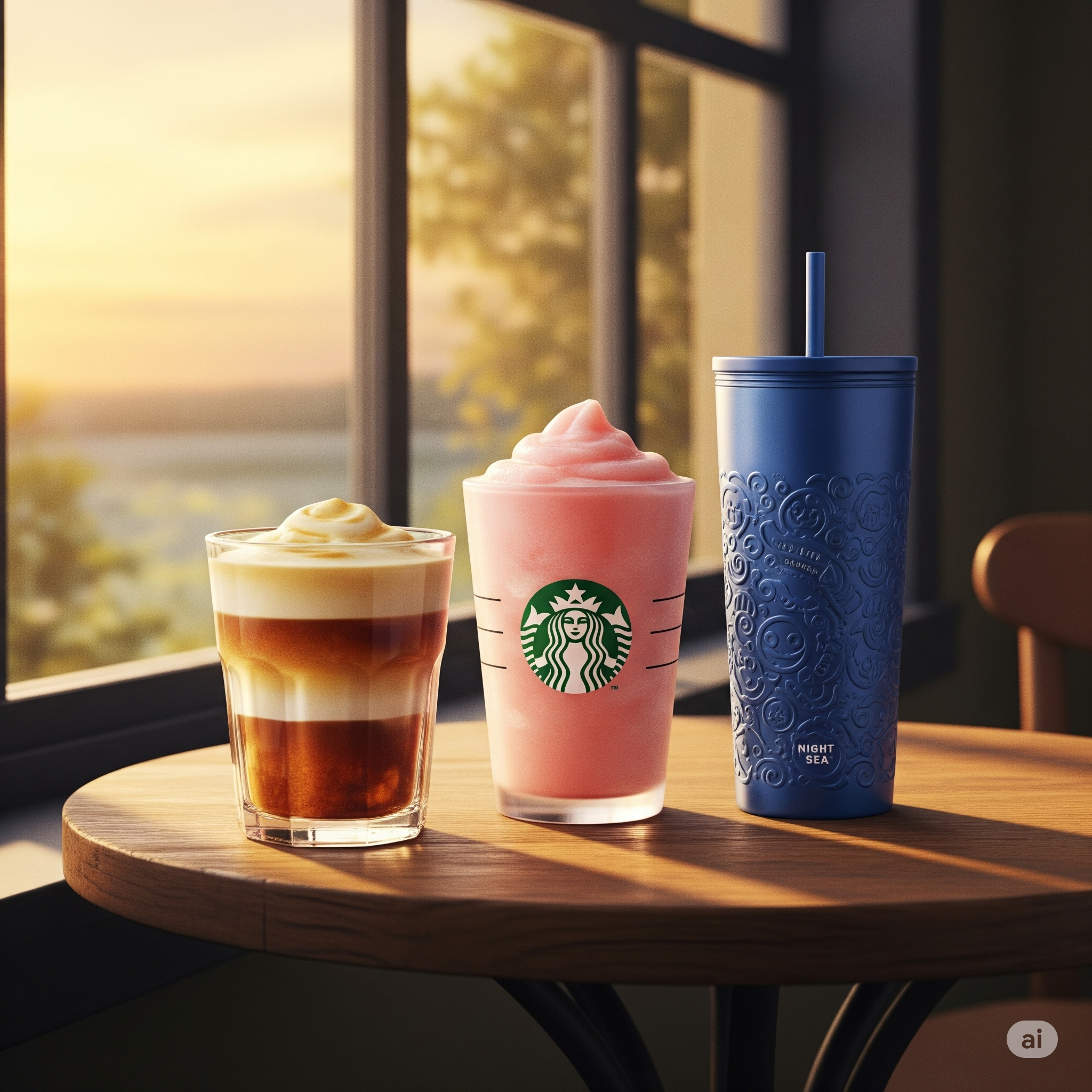 깊은 남색과 보라색, 반짝이는 별빛을 모티브로 한 텀블러, 머그컵, 키체인 등이 출시되었습니다. 특히 보는 각도에 따라 색이 변하는 오로라 코팅 제품들이 인기가 높았습니다. - 꿀팁: 인기 상품은 대부분 품절되었겠지만, 의외의 매장에서 '숨은 보석'을 발견할 수도 있습니다. 음료를 주문하면서 MD 진열대를 한번 둘러보는 재미를 놓치지 마세요.