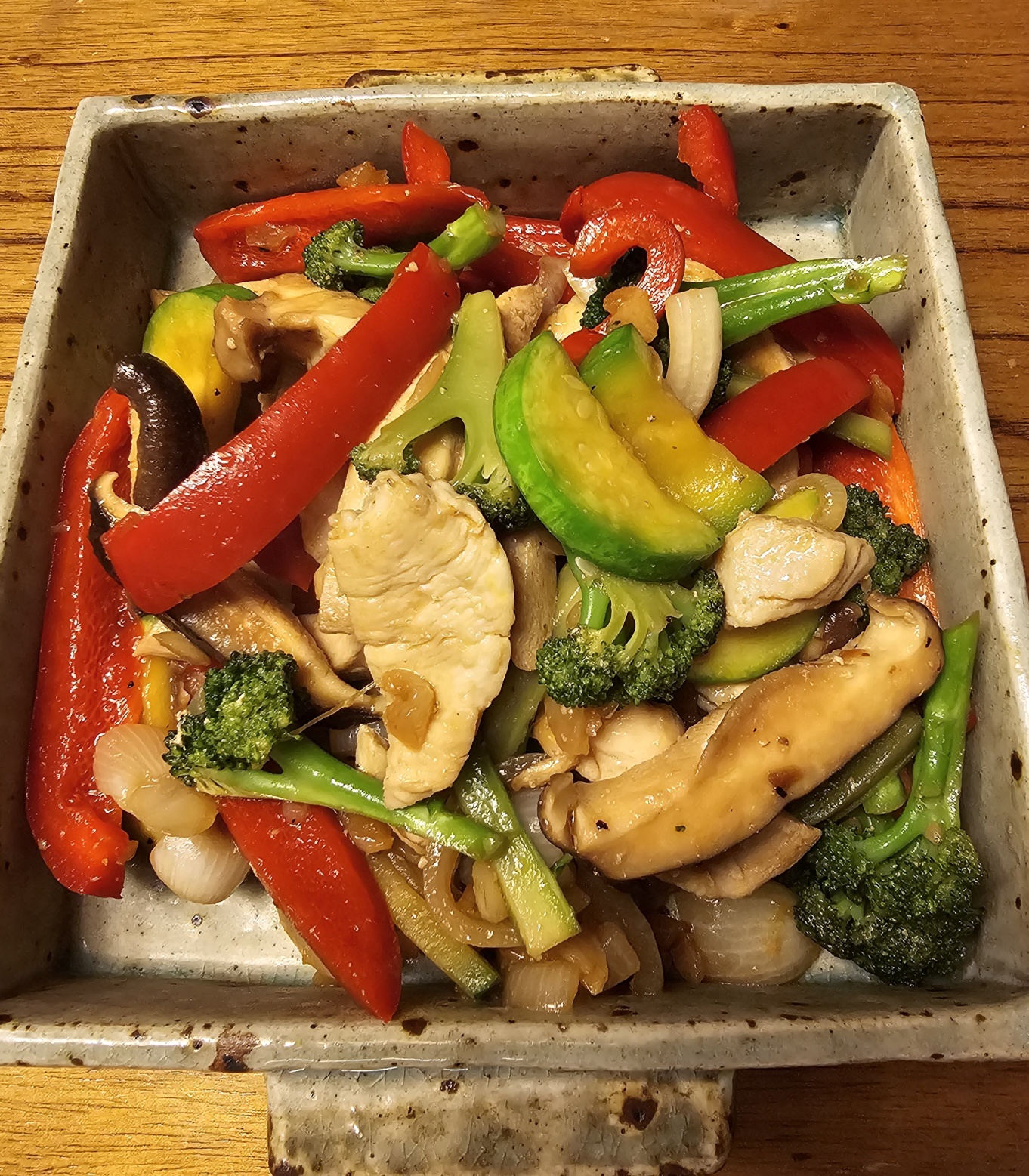 짜잔! 드디어 저만의 닭가슴살 채소볶음이 완성되었습니다. 처음 도전해 본 요리인데, 생각보다 그럴듯한 비주얼에 스스로 감탄했어요. "나 꽤 하는데?" 라며 혼잣말로 칭찬까지 했답니다. 😊