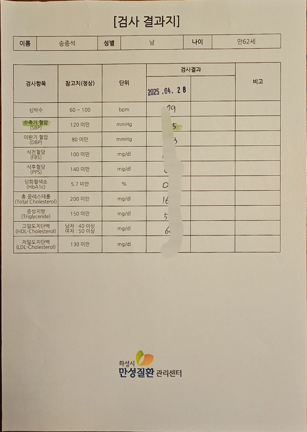 아침 일찍 공복 상태로 방문하여 혈압과 공복 혈당, 그리고 콜레스테롤 4종 검사를 진행했습니다. 제가 10년 넘게 당뇨약을 복용하고 있어서 공복 혈당 수치에 대한 걱정이 조금 있었는데요. 결과는 120 수준으로, 꾸준히 약을 복용하며 잘 관리하고 있다는 칭찬을 받았습니다. 담당 선생님께서는 젊다면 약을 끊는 것도 고려해 볼 수 있지만, 지금은 오히려 약을 거르는 것이 건강에 더 좋지 않다고 친절하게 설명해 주셨습니다. 콜레스테롤 수치도 양호하게 나와서 더욱 안심이었습니다. 역시 꾸준한 관리가 답이라는 것을 다시 한번 깨달았습니다.
