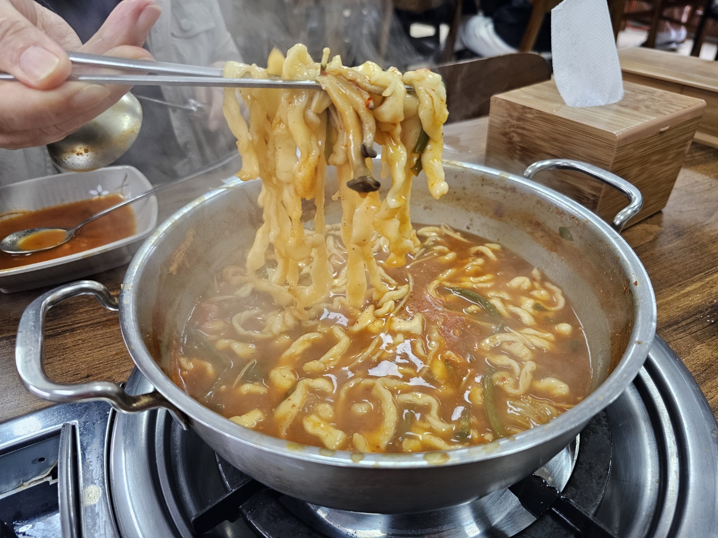 저희가 식사하는 중에도 대기 줄은 계속 길어졌고, 급기야 얼큰한 육수가 모두 동이 나서 다른 메뉴로 주문을 유도하고 있었어요. 직원분 말로는 이 집의 멸치육수 칼국수도 대표 메뉴라고 하더라고요. 다음 방문 때는 꼭 멸치육수를 먹어봐야겠다고 다짐했습니다.