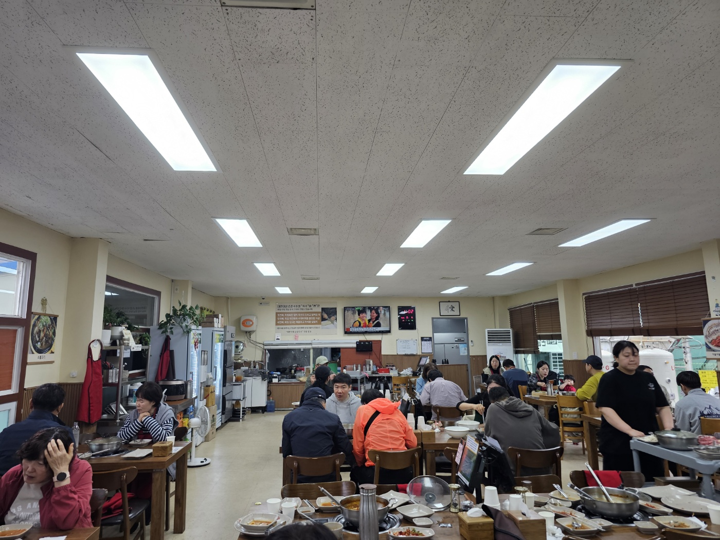 식당에 도착하니 입구에는 벌써부터 손님들이 줄을 서 있었습니다. 내부로 들어가 예약자임을 알리니, 점원께서 “오전에 손님이 너무 많아서 김치가 다 떨어졌다”며 김치를 다시 담느라 30분 정도 기다려야 한다고 하셨습니다. 어차피 맛보러 온 길, 흔쾌히 기다리기로 했죠. 그런데 10분쯤 지나자 곧바로 호출되어 자리로 안내받았습니다.