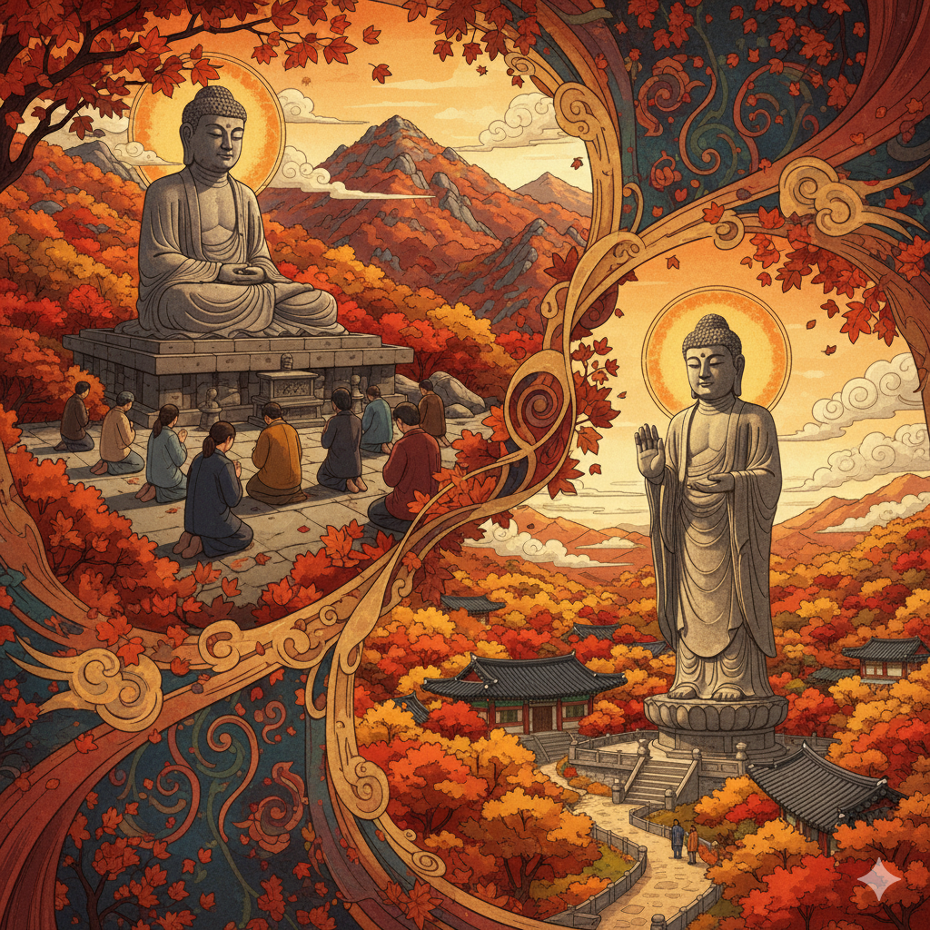 2. "웅장한 대불과 단풍의 조화" - 동화사 코스