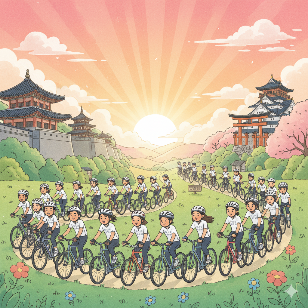 차가운 가을 공기를 가르며 힘차게 페달을 밟는 30명 청년들의 땀방울이, 과거 조선통신사가 전했던 평화와 우호의 메시지처럼 양국 국민들의 마음에 따뜻한 울림을 주기를 기대합니다.
