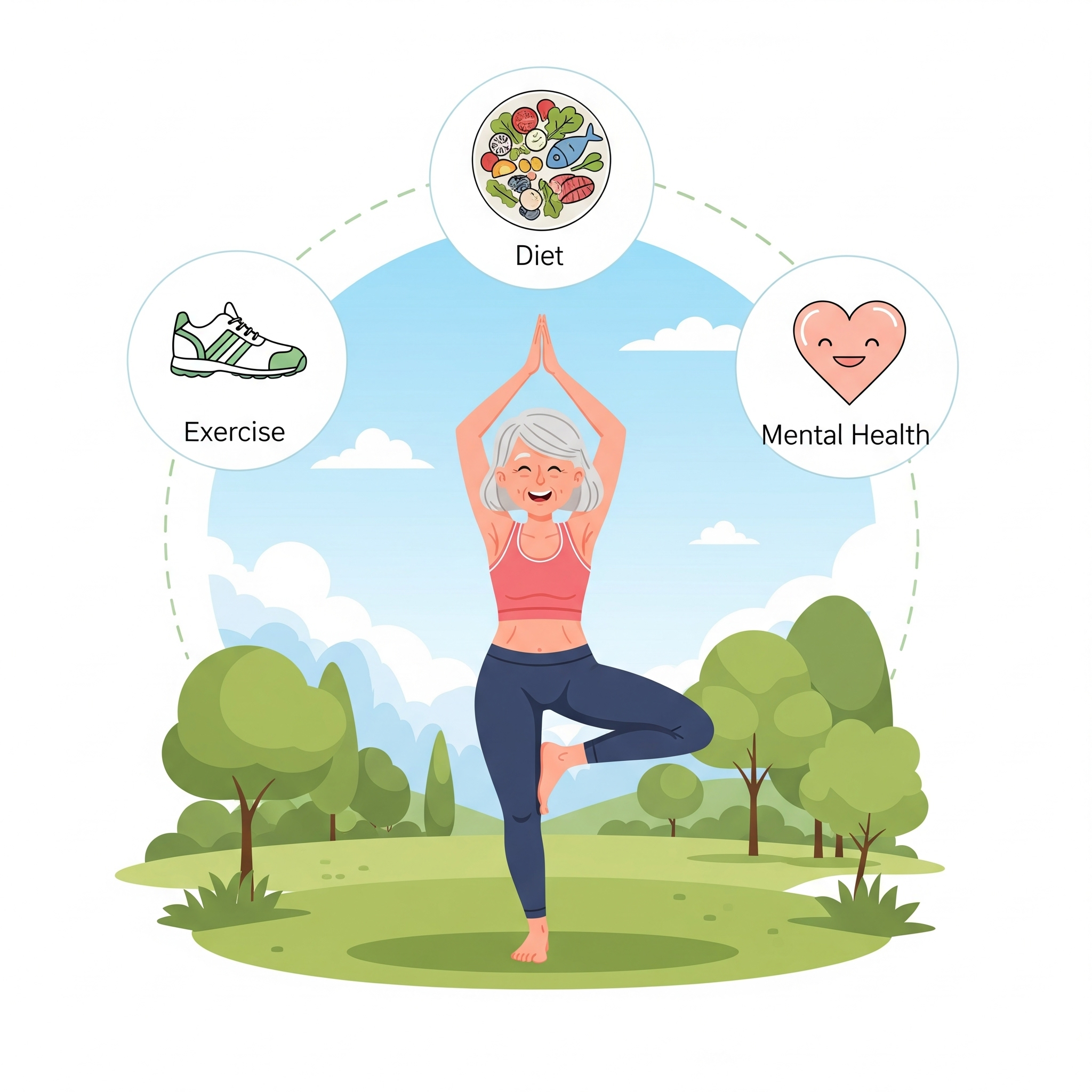 '근테크'라는 말이 있죠. 노후를 위한 최고의 투자는 근육에 하는 투자입니다. 헬스장에 갈 필요 없습니다. 가벼운 아령을 들거나, 맨몸 스쾃, 플랭크 같은 간단한 운동으로 하체와 코어 근육을 꾸준히 단련하는 것이 중요합니다. 이는 넘어질 위험을 줄이고, 일상생활에 활력을 더해줍니다.