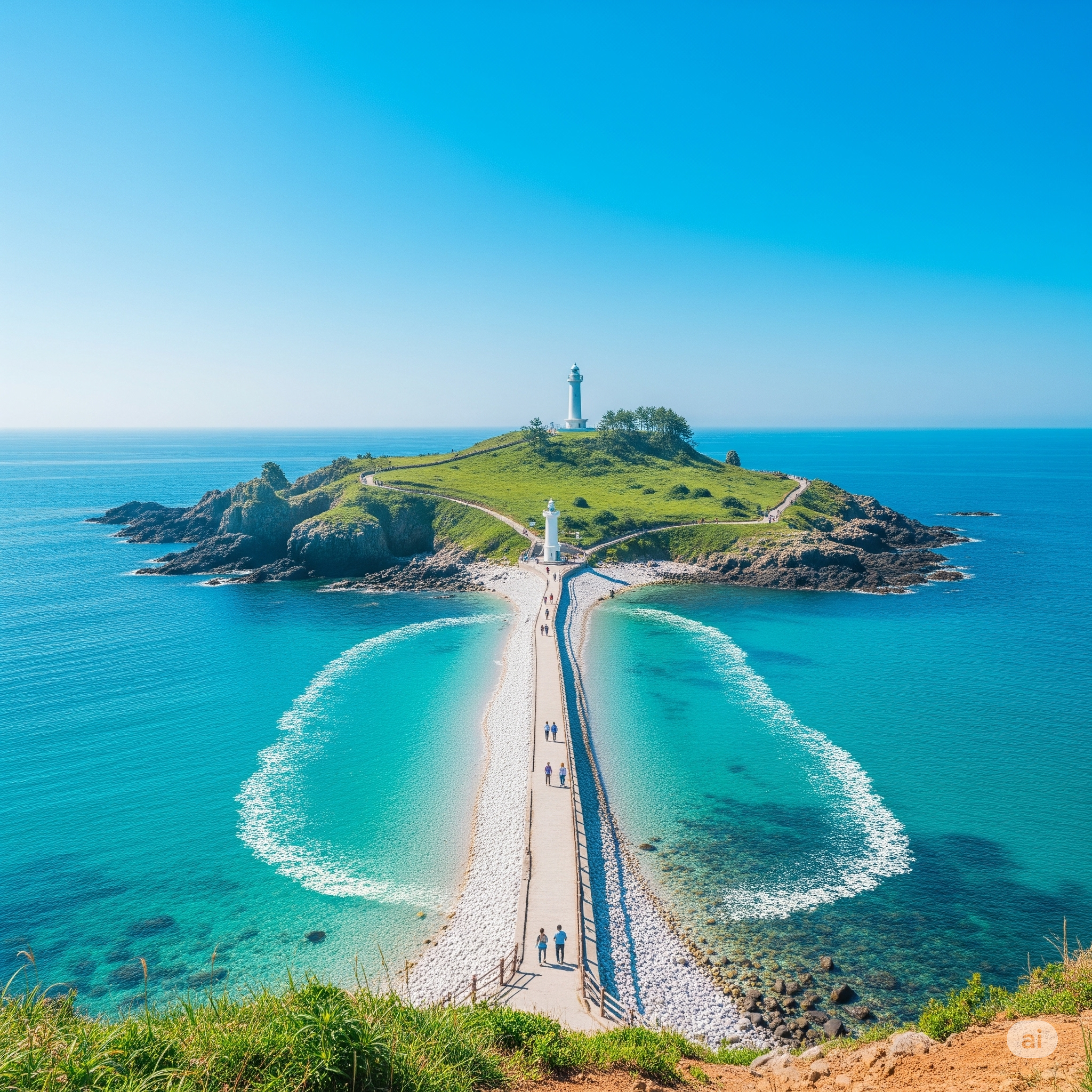 에메랄드빛 바다, 하얀 등대, 그리고 하루에 딱 두 번, 바다가 갈라지며 열리는 신비의 길.